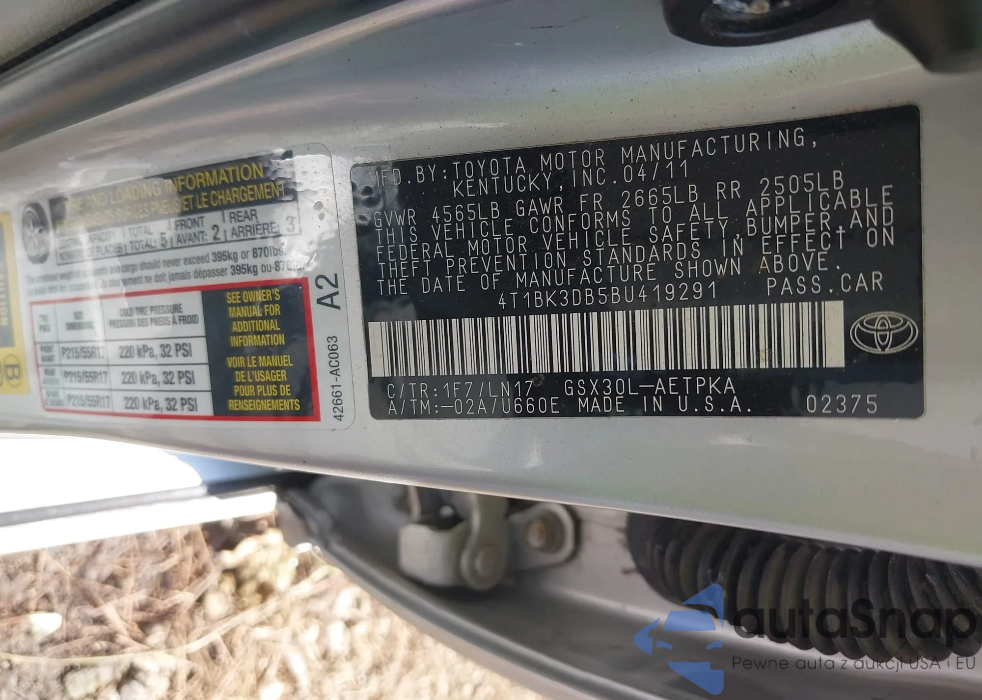 LOT: 40501166 VIN: 4T1BK3DB5BU419291