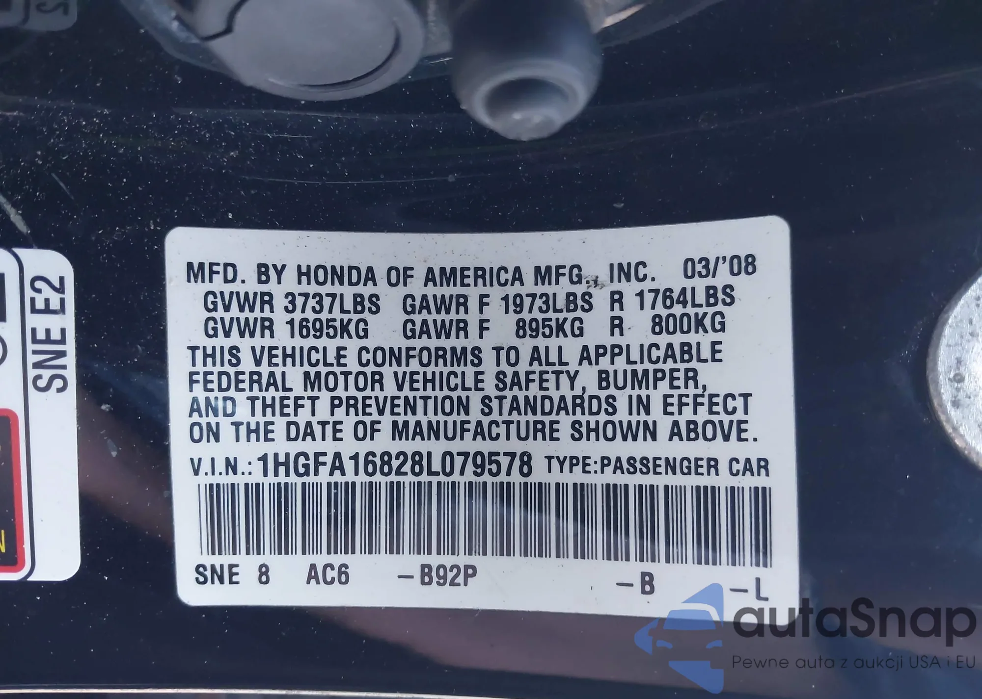 • VIN 1HGFA16828L079578
