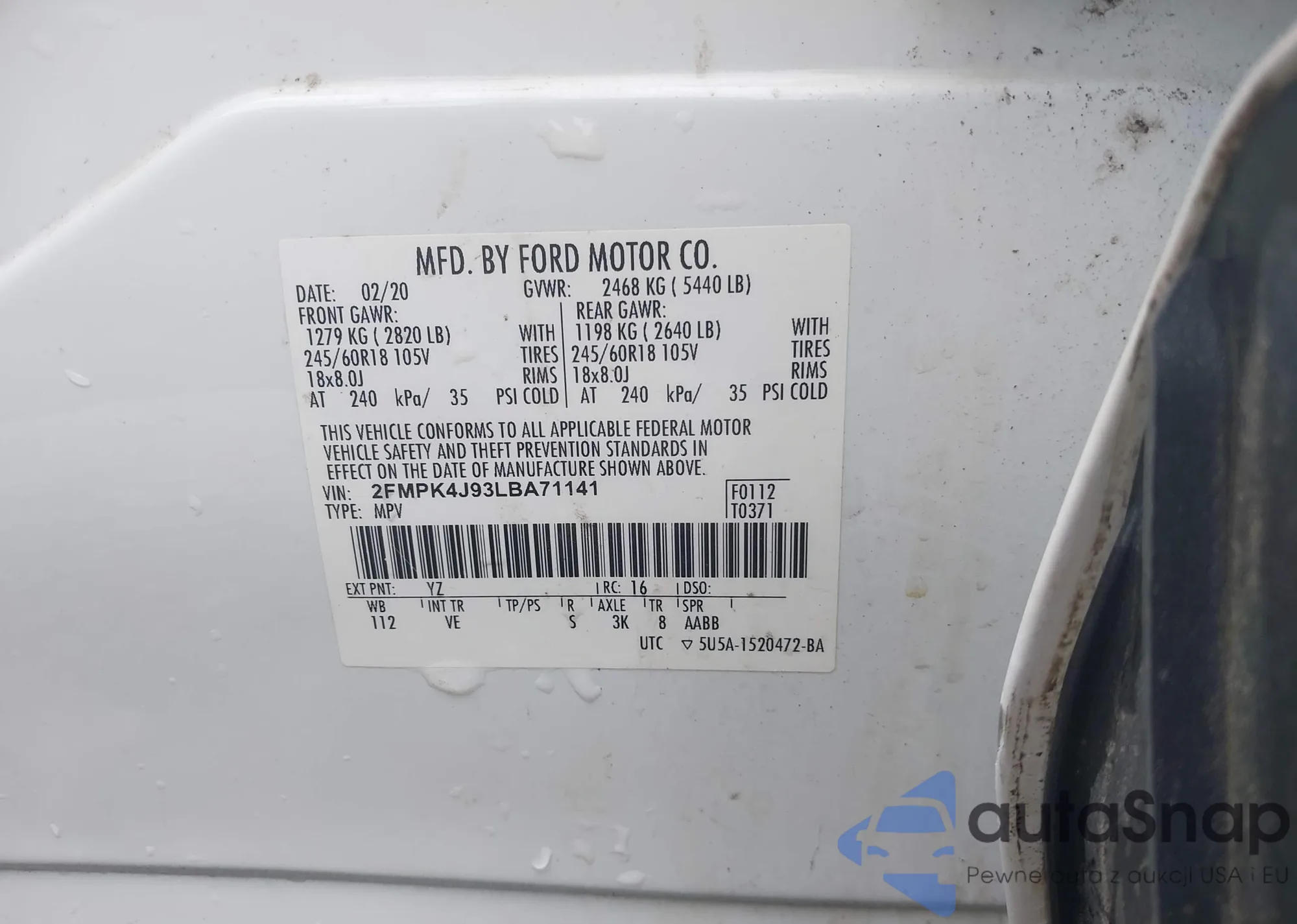 LOT: 37903474 VIN: 3FA6P0H90FR109940