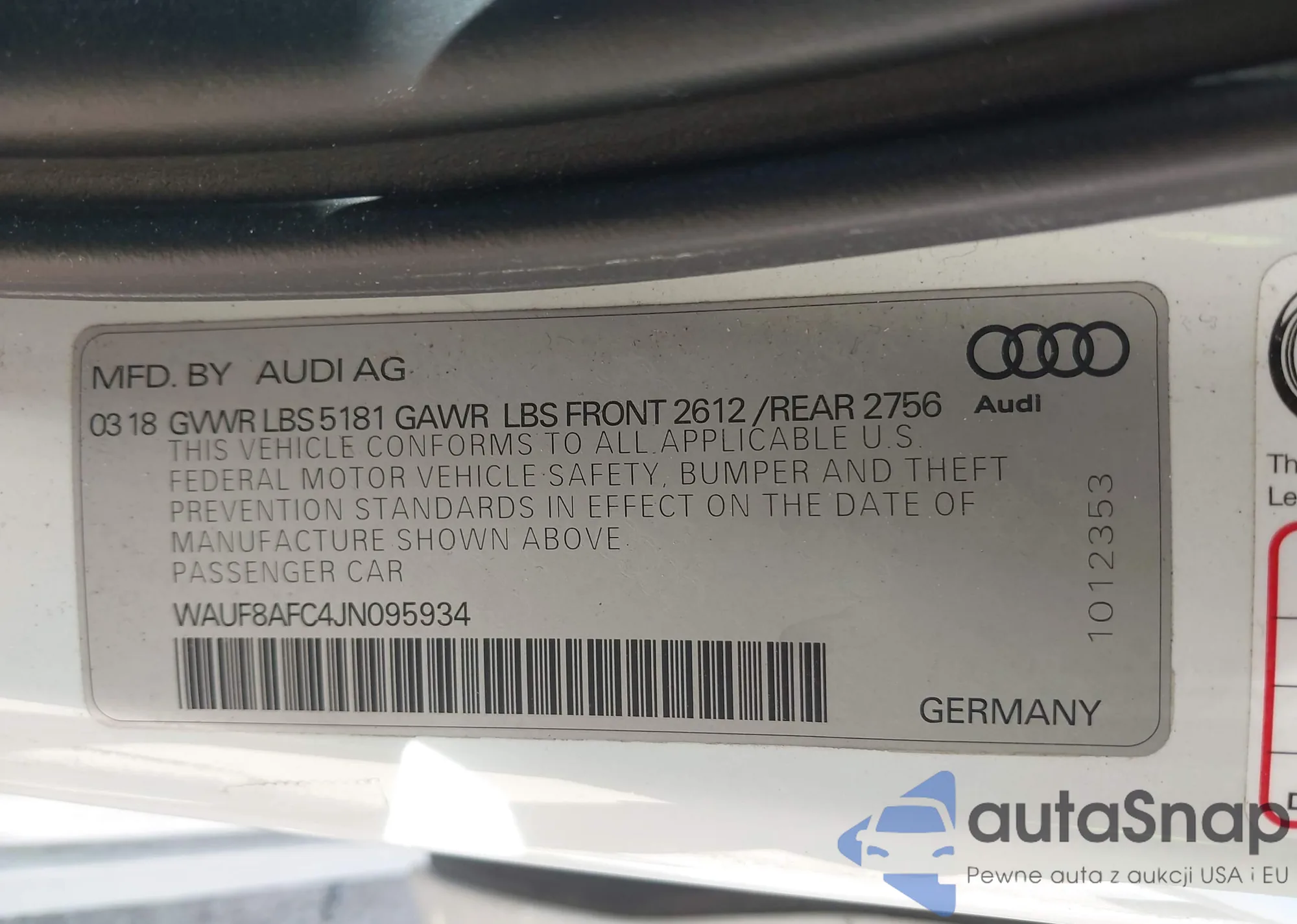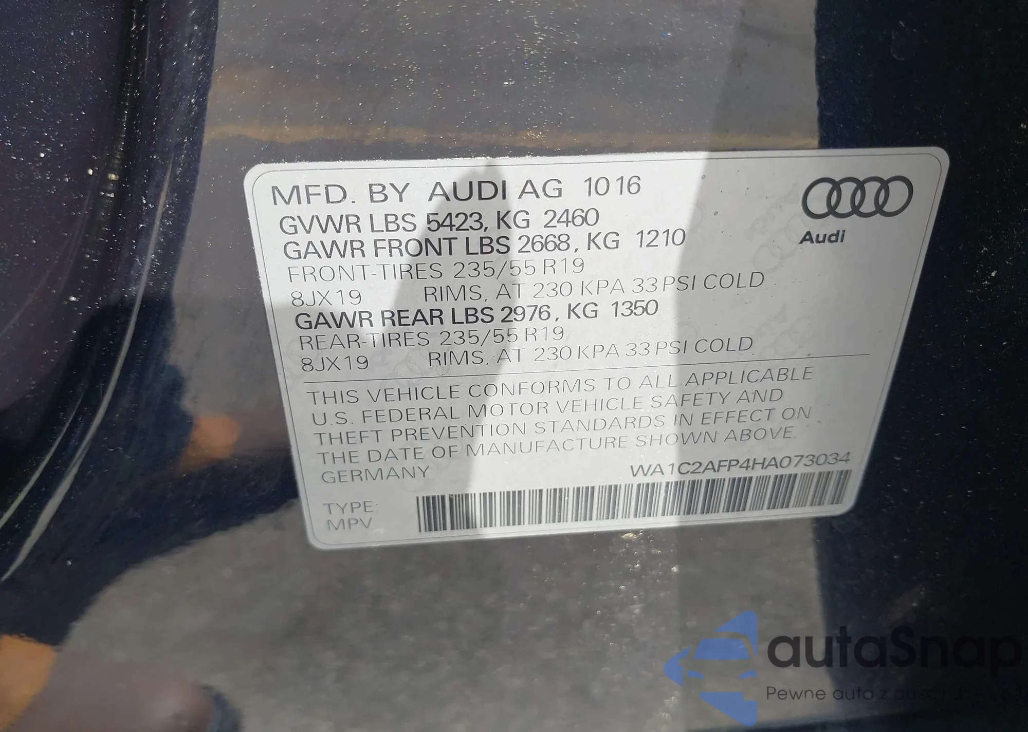 LOT: 42006836 VIN: WA1C2AFP4HA073034