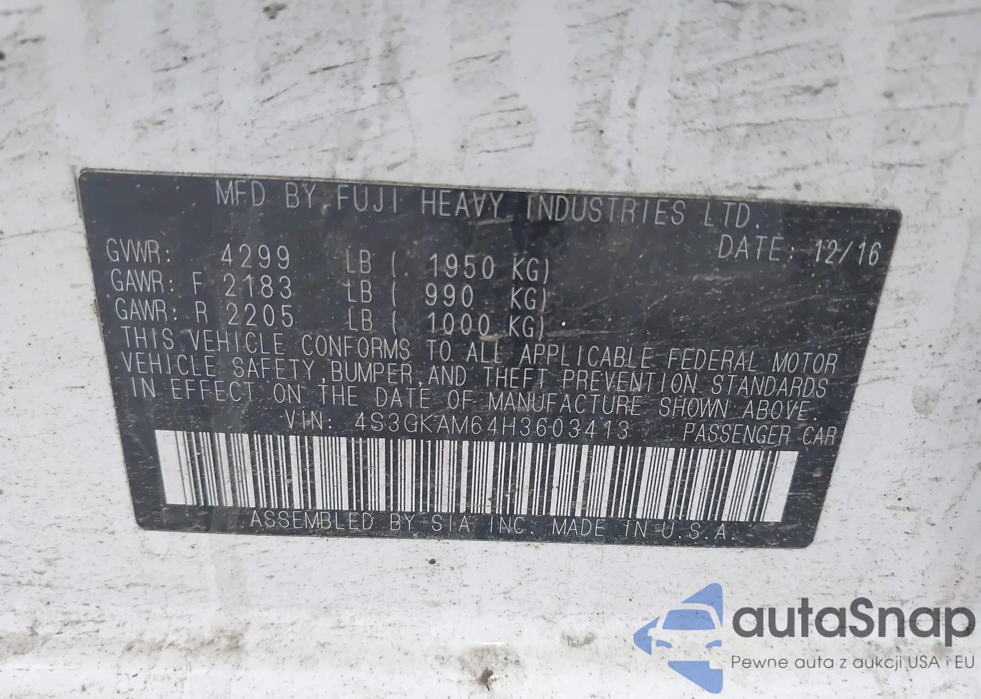 LOT: 42139107 VIN: 4S3GKAM64H3603413