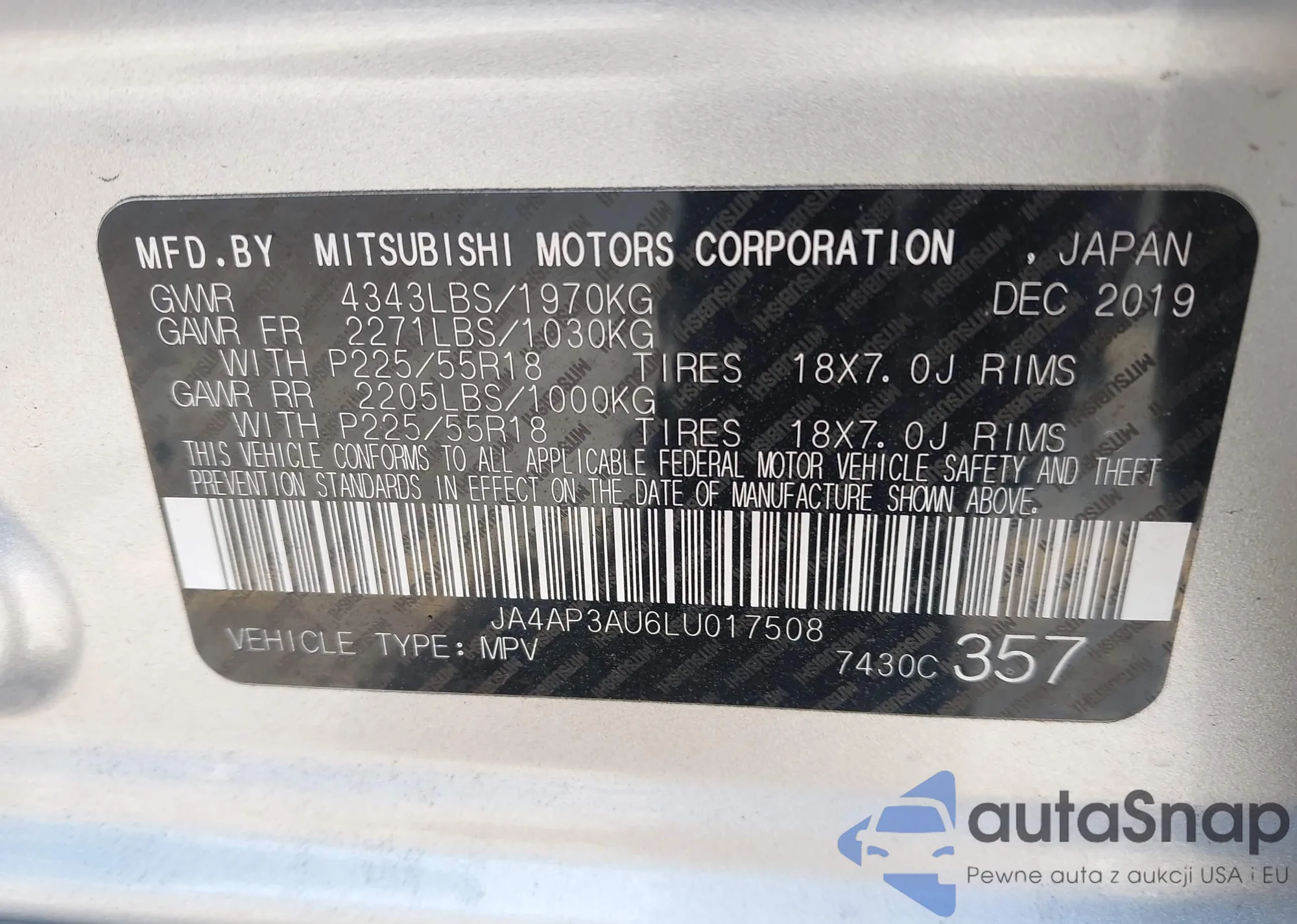 LOT: 42354698 VIN: JA4AP3AU6LU017508