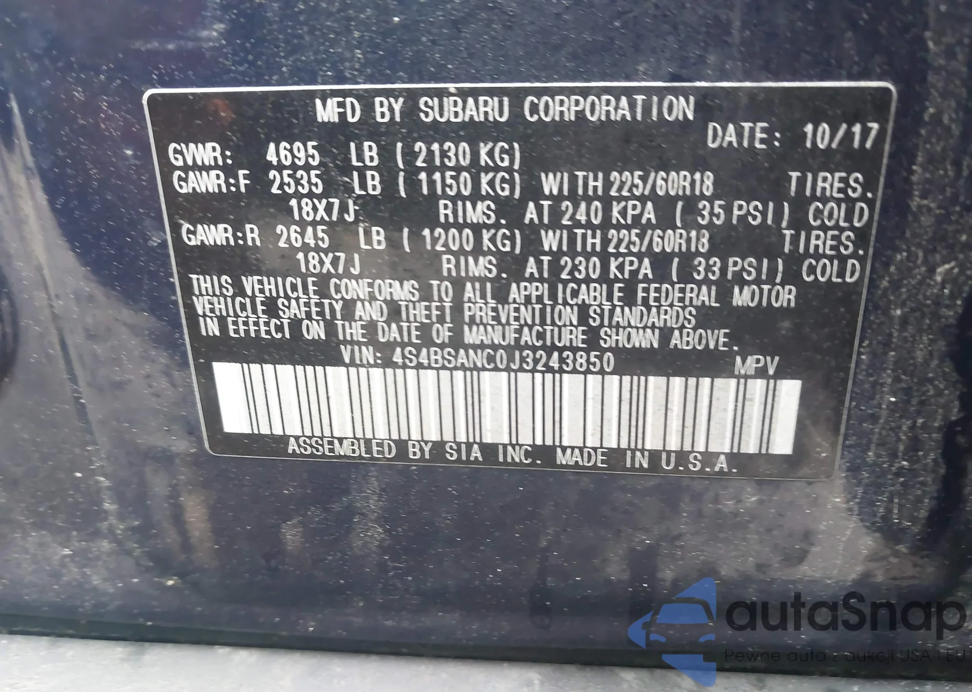 • VIN 4S4BSANC0J3243850