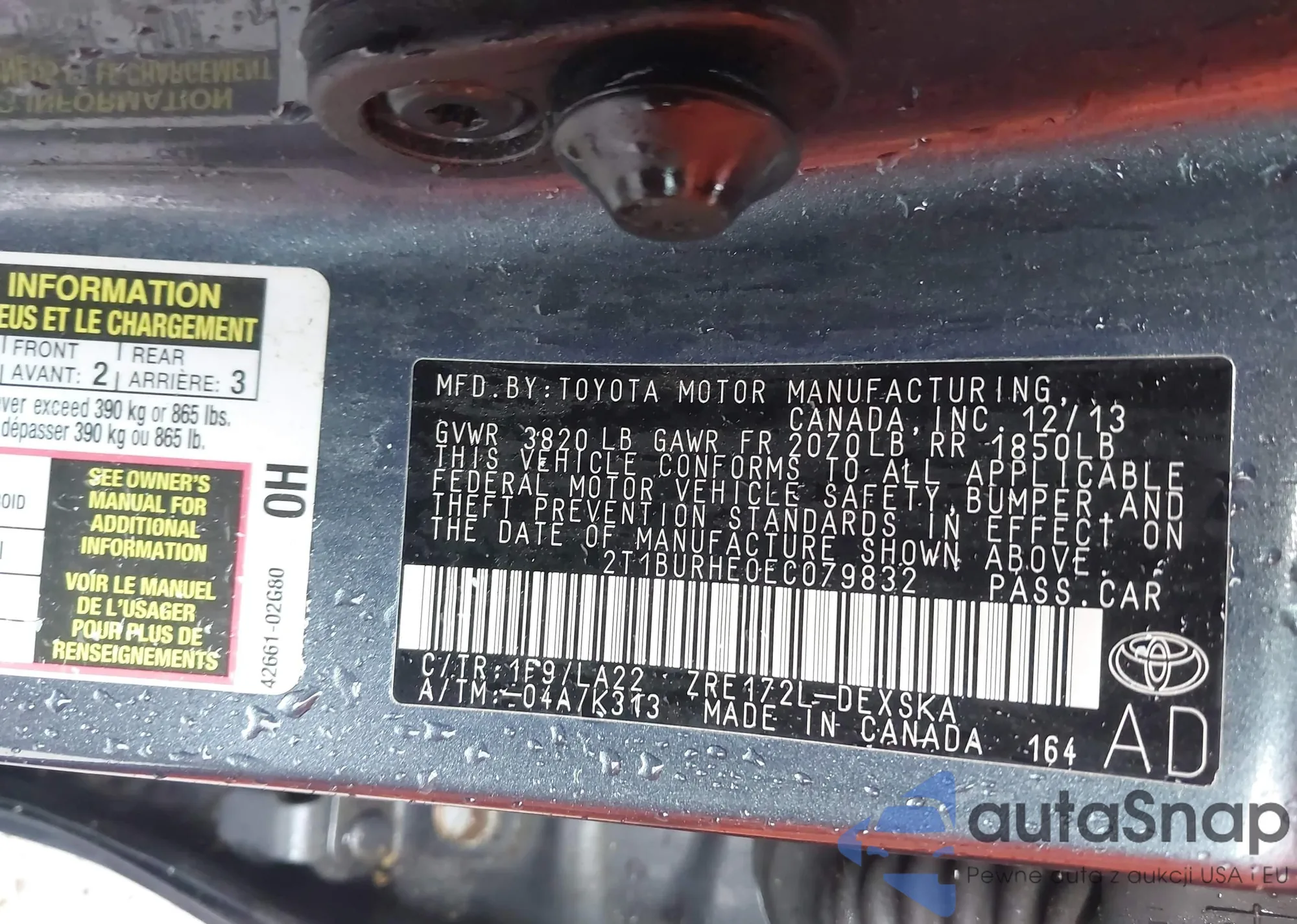 LOT: 42343213 VIN: 2T1BURHE0EC079832