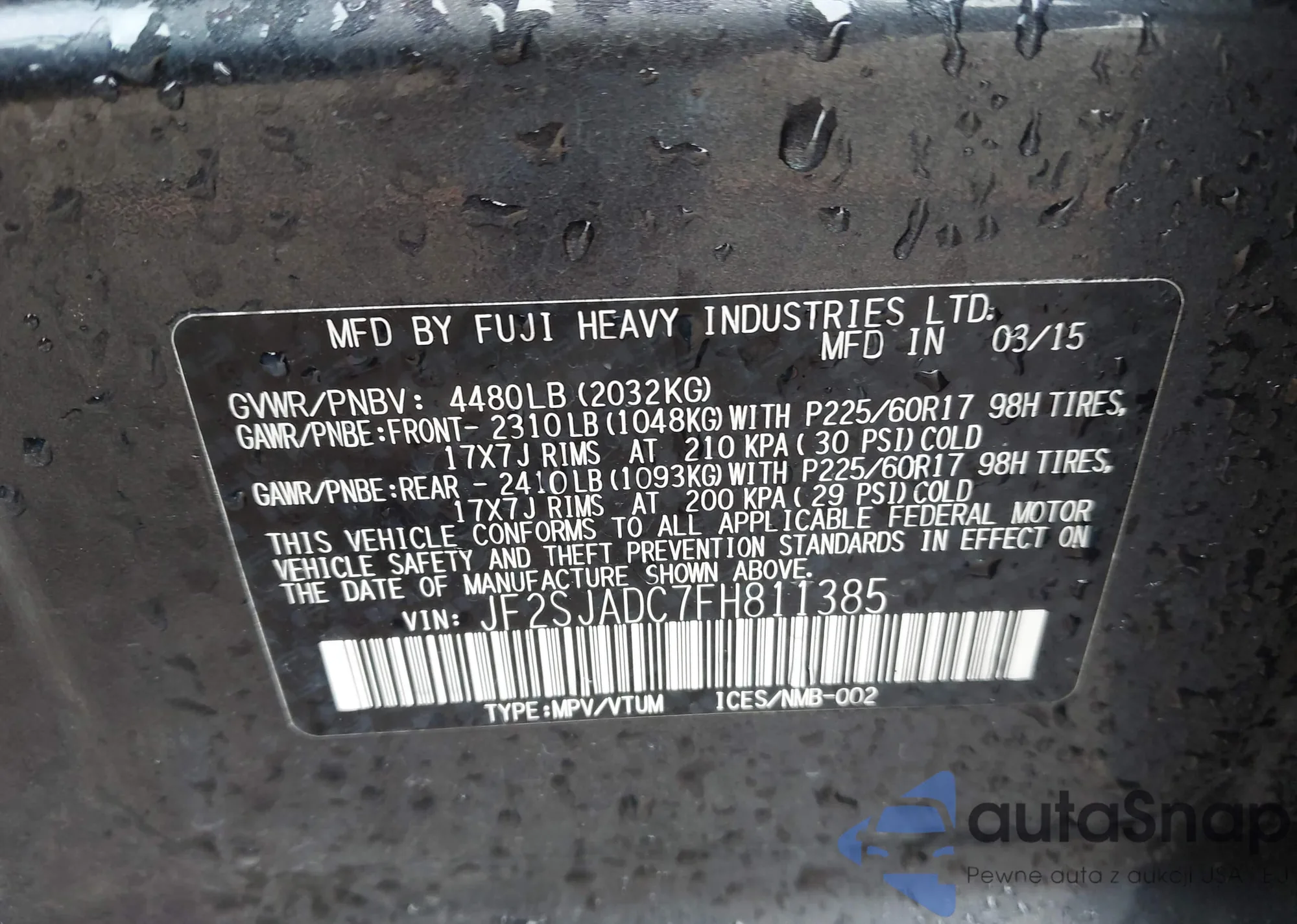 • VIN JF2SJADC7FH811385