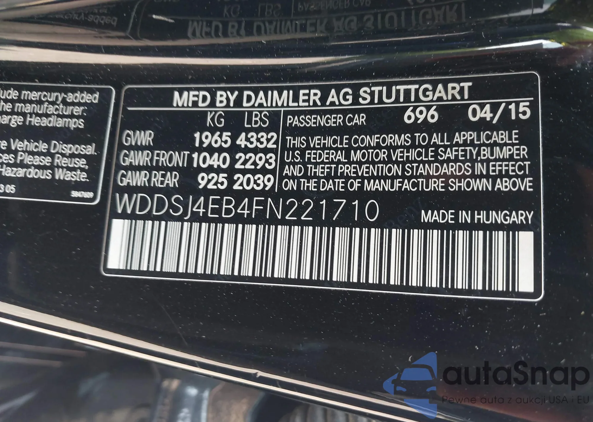LOT: 42401036 VIN: WDDSJ4EB4FN221710
