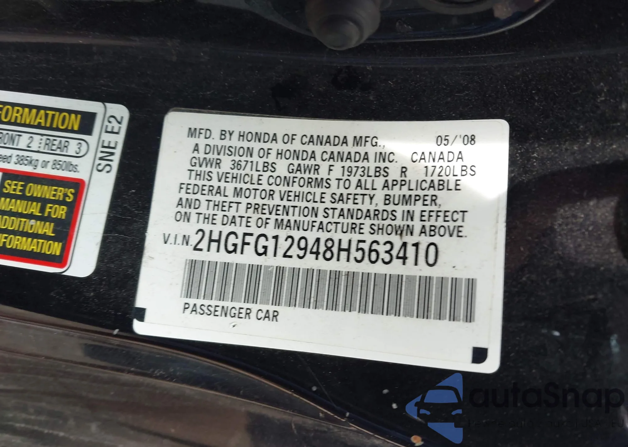 • VIN 2HGFG12948H563410