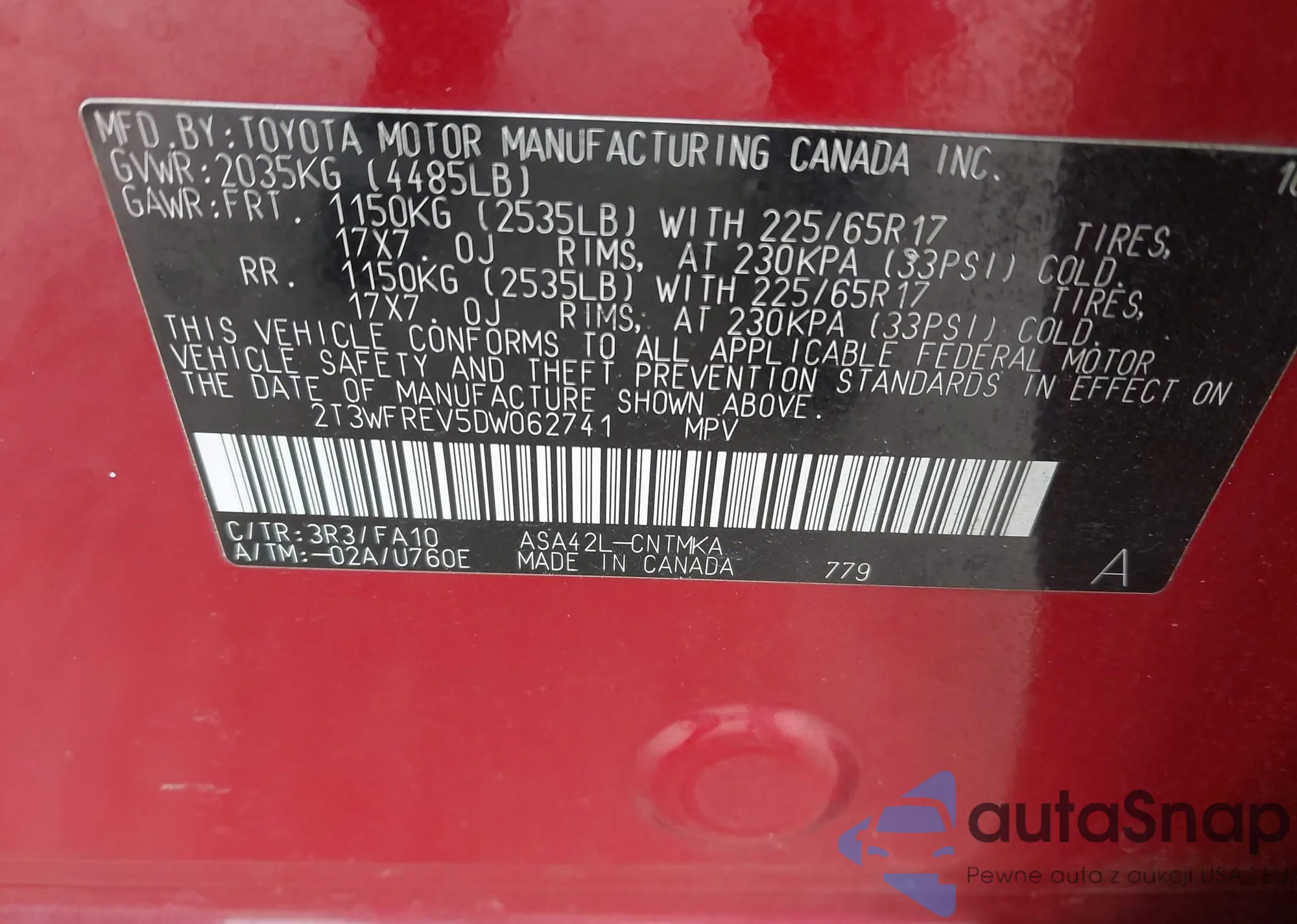 • VIN 1C4RDJDG6KC770441