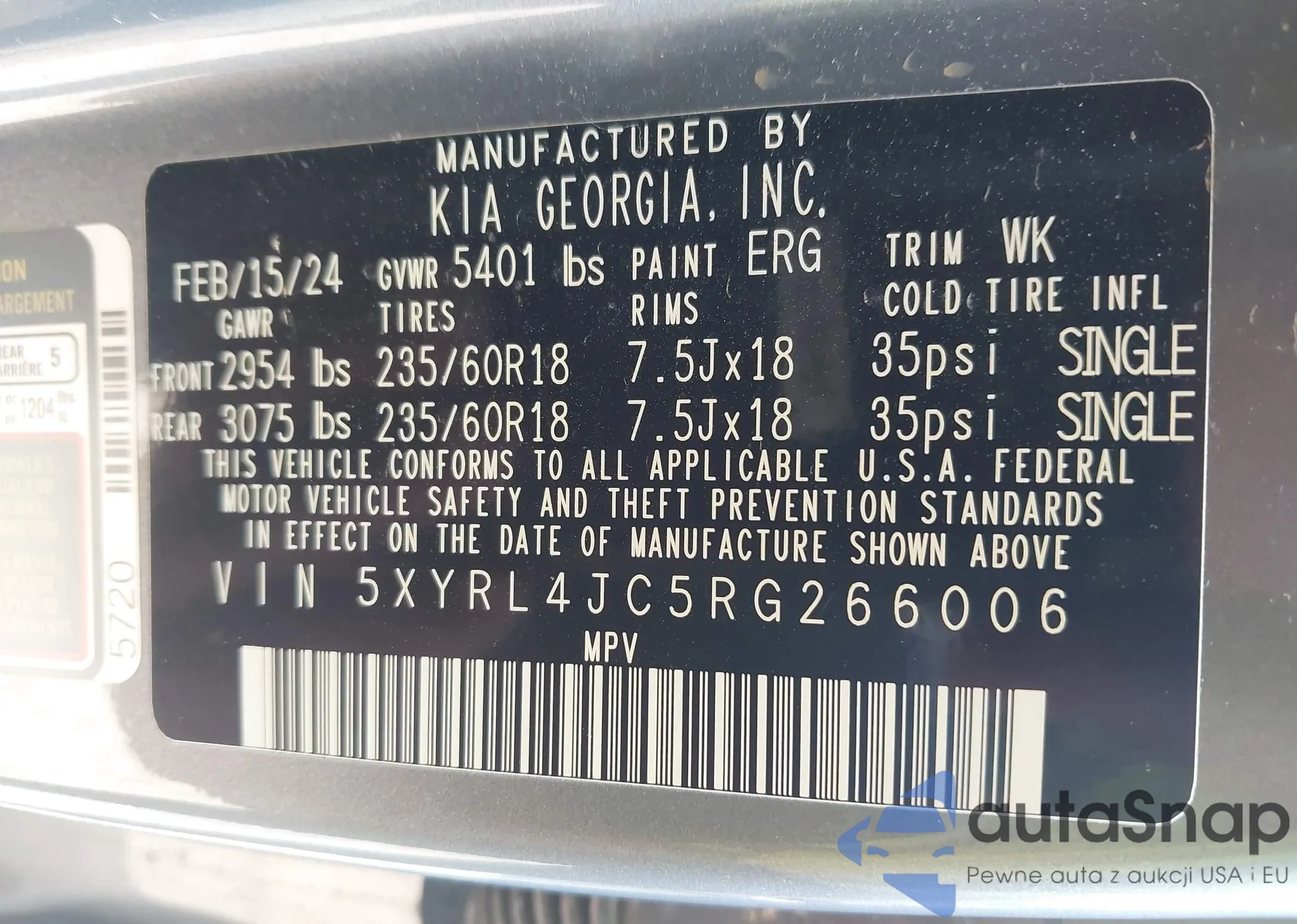 • VIN 5XYRL4JC5RG266006