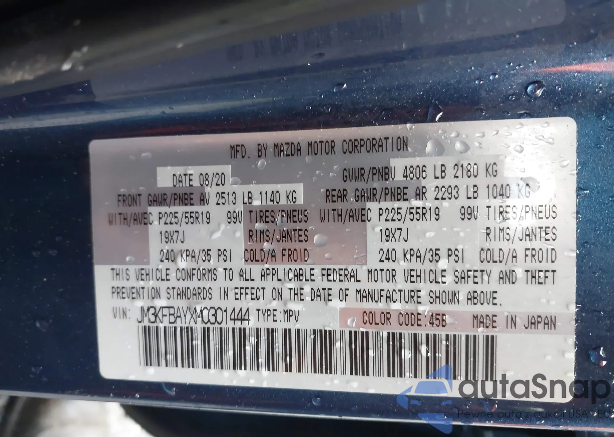 LOT: 42321034 VIN: JM3KFBAYXM0301444