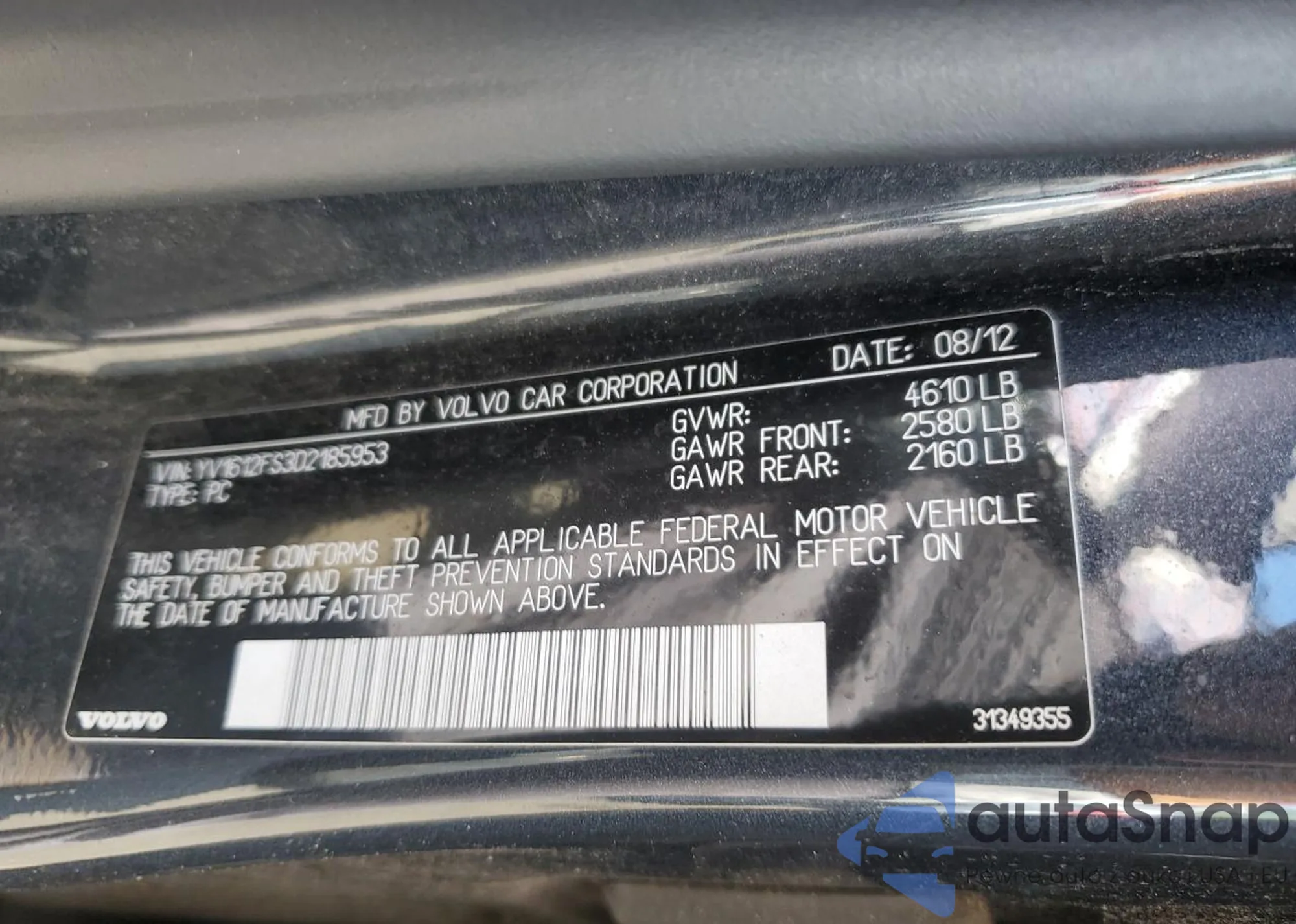 • VIN YV1612FS3D2185953