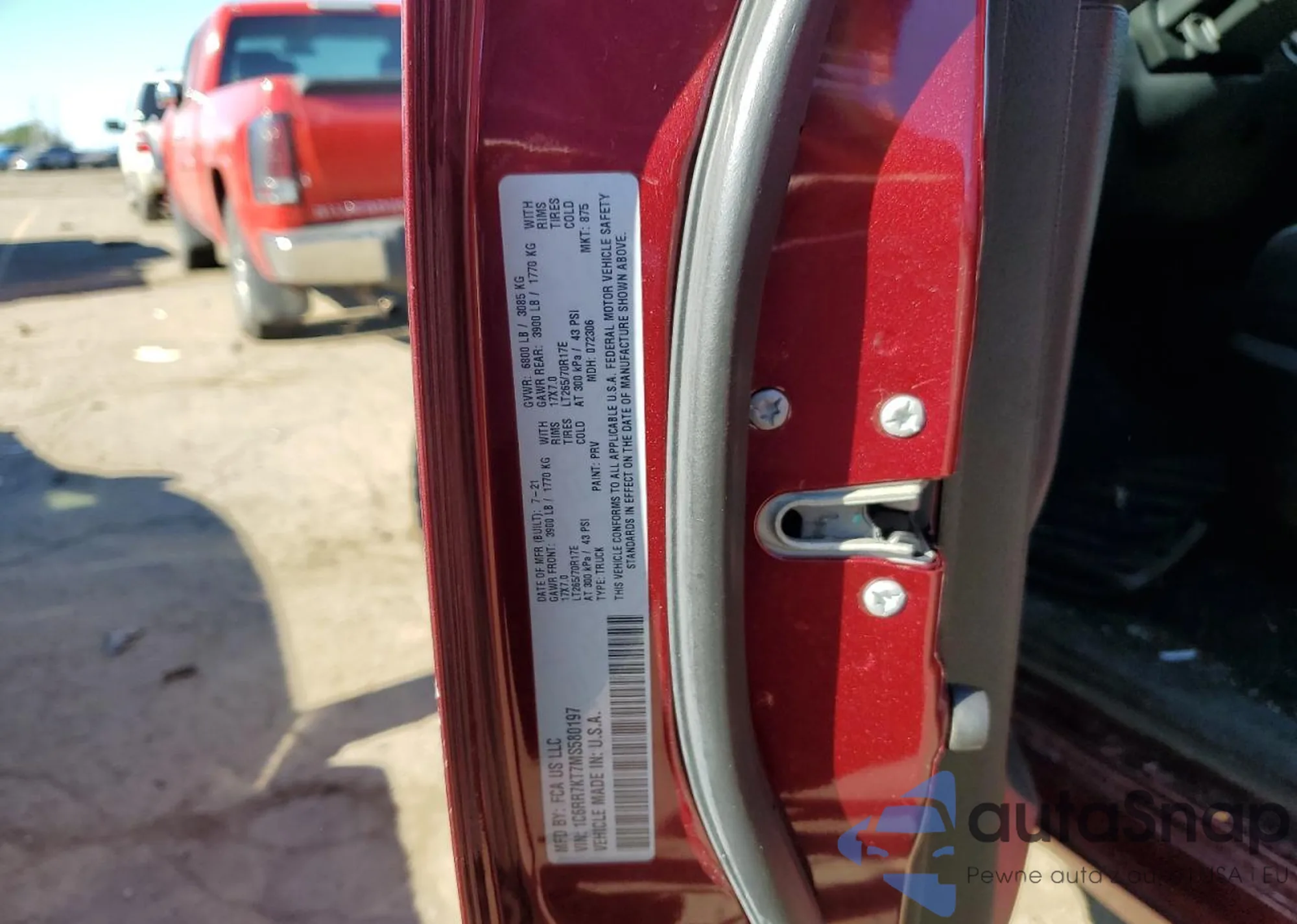LOT: 50018155 VIN: 1C6RR7KT7MS580197