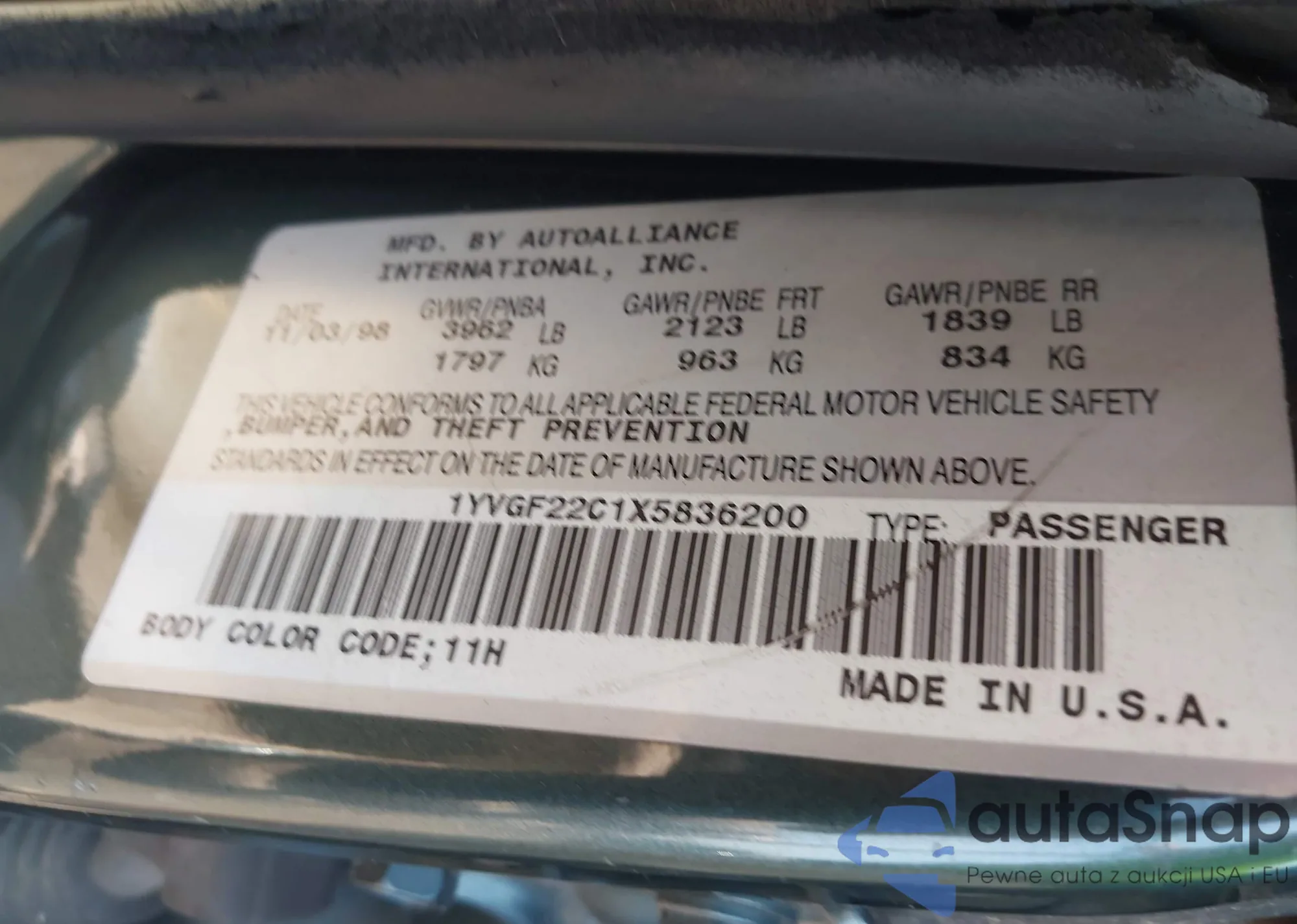 • VIN 1YVGF22C1X5836200