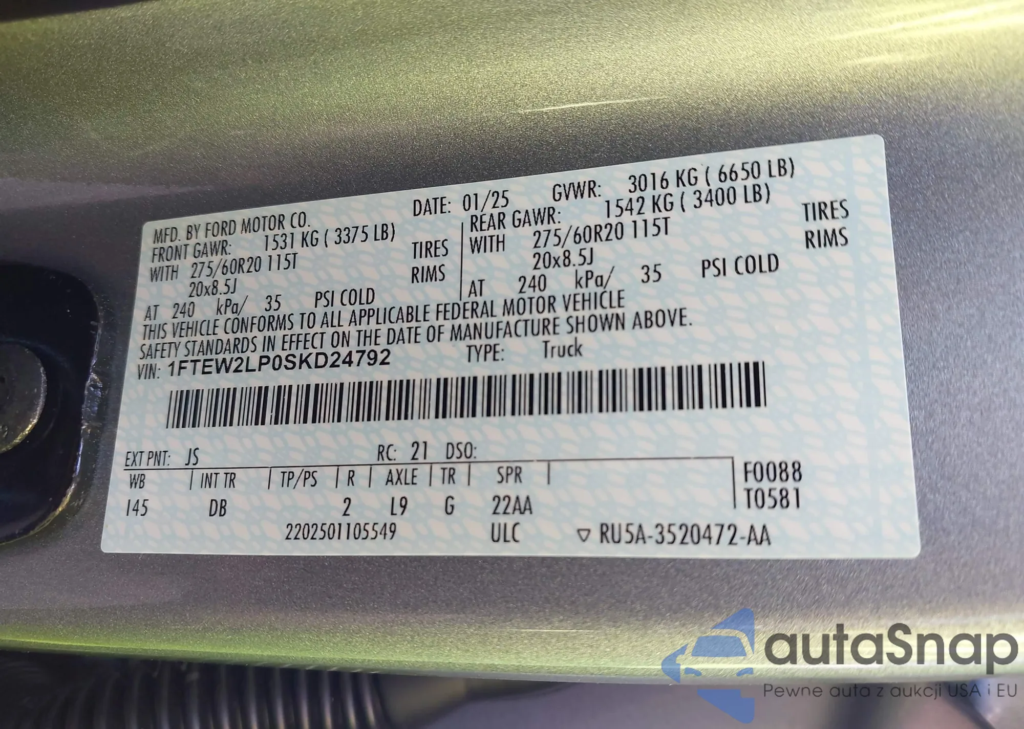 LOT: 42618140 VIN: 1FMCU0G65NUC04672