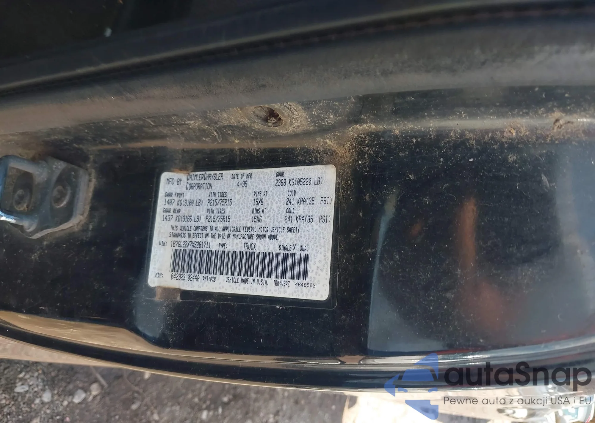 • VIN 1B7GL22X7XS281711