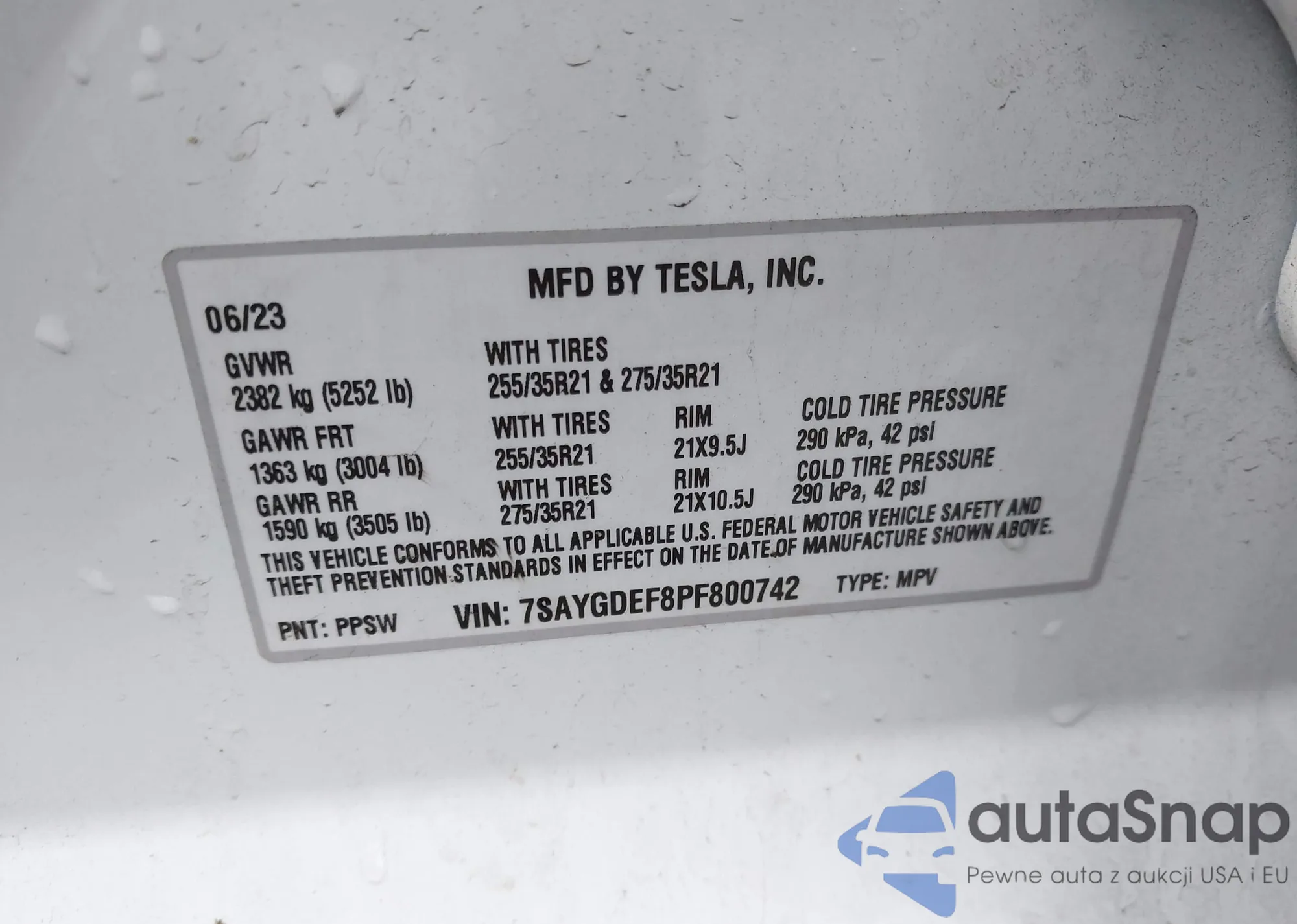 • VIN 7SAYGDEF8PF800742
