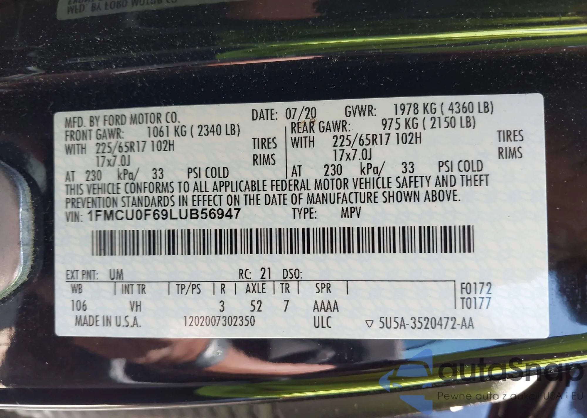 • VIN 1FMCU0F69LUB56947
