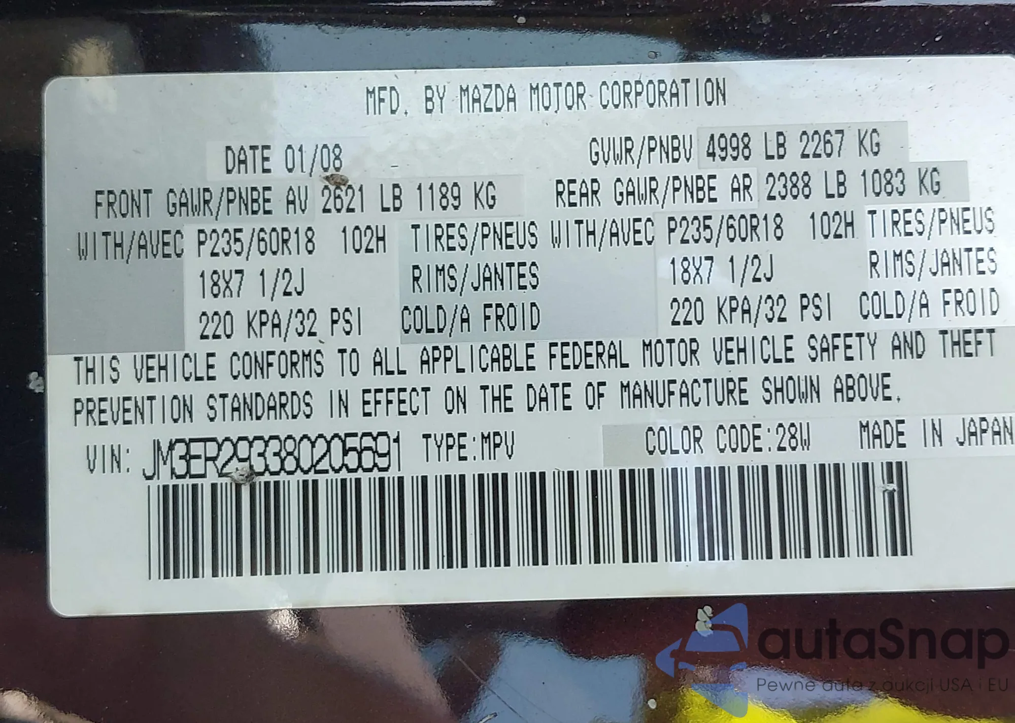 LOT: 42497773 VIN: JM3ER293380205691
