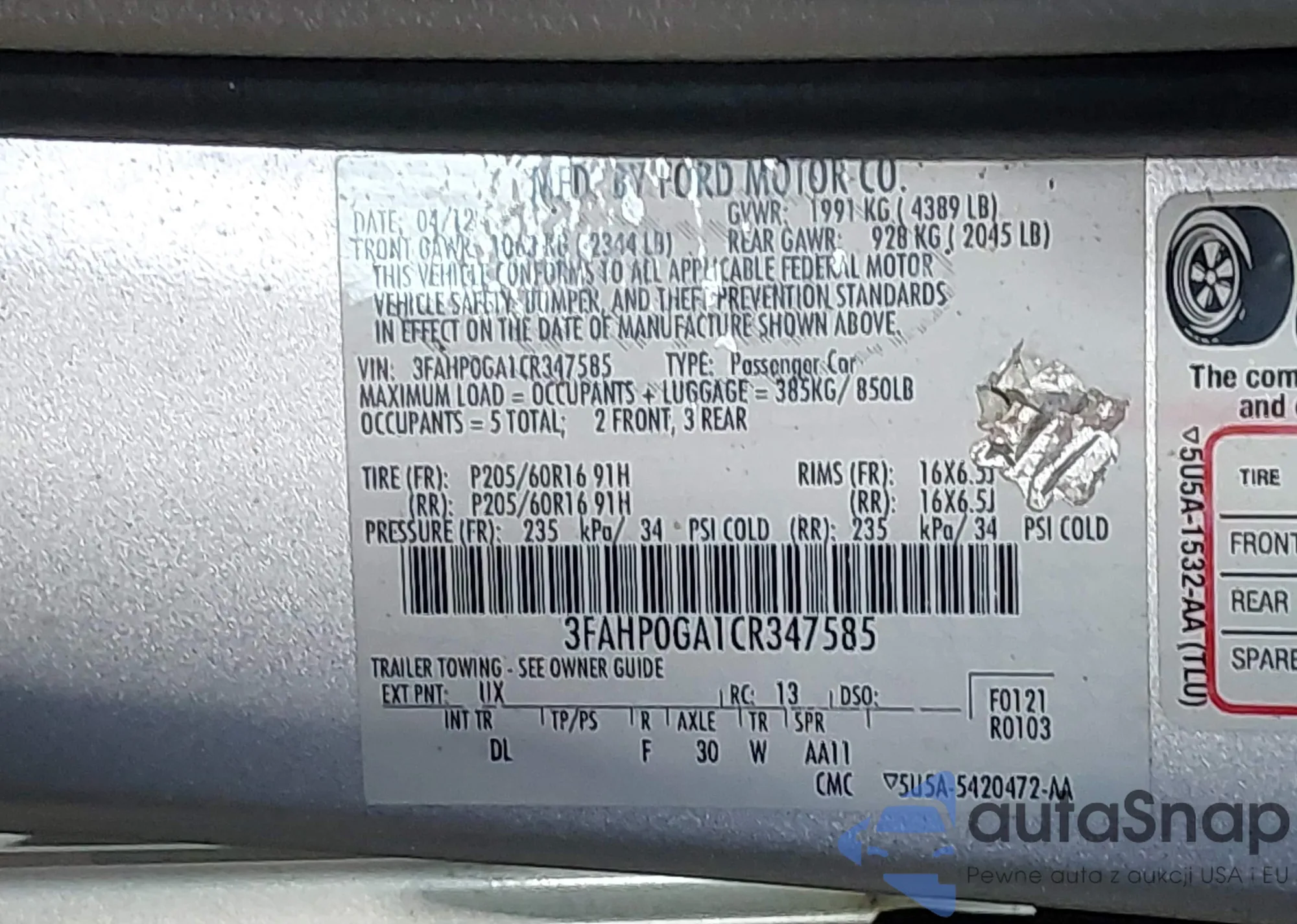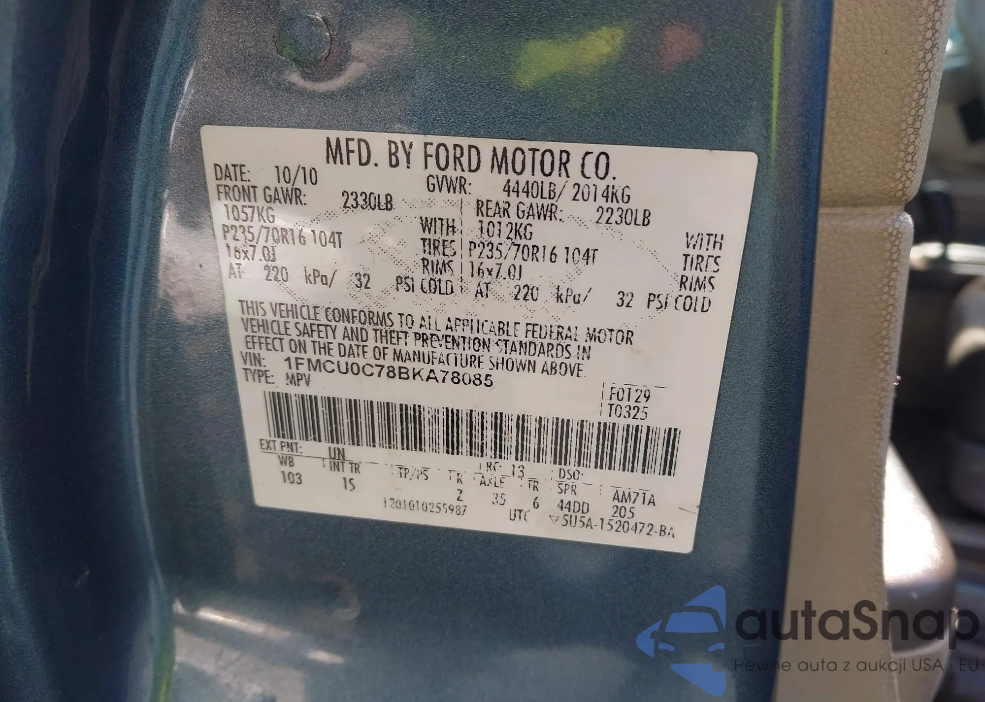 • VIN 1FMCU0C78BKA78085
