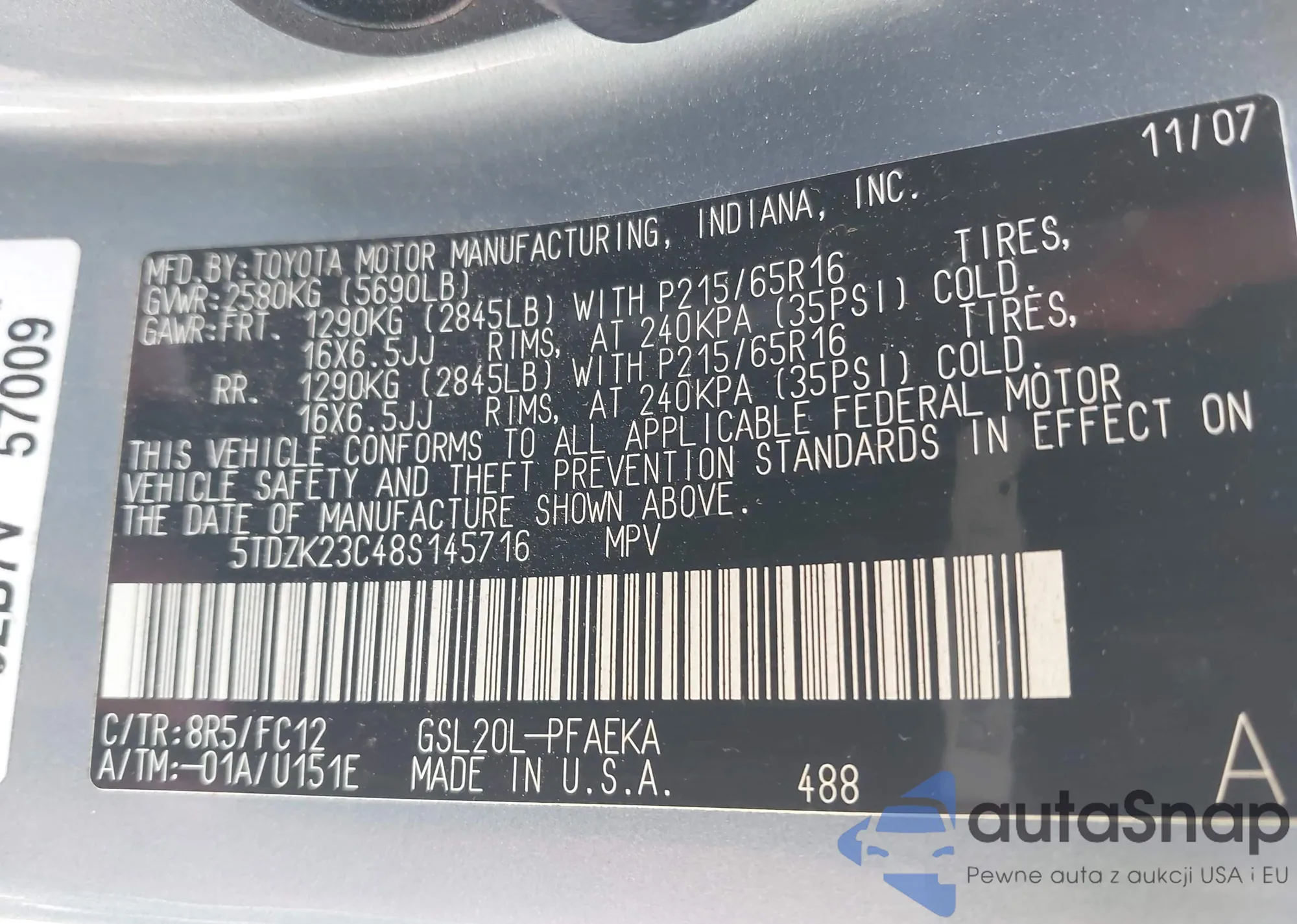 LOT: 42567278 VIN: 5TDZK23C48S145716
