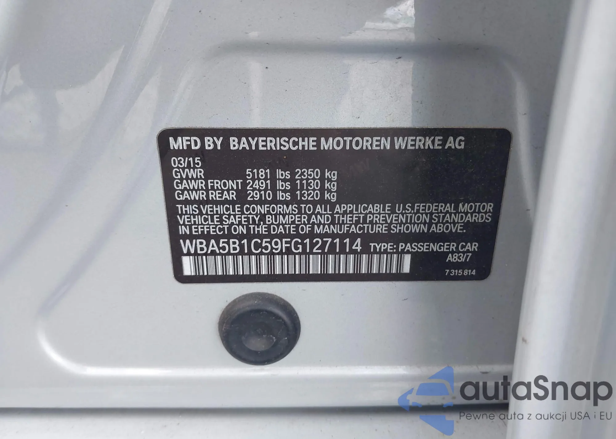 • VIN WBA5B1C59FG127114