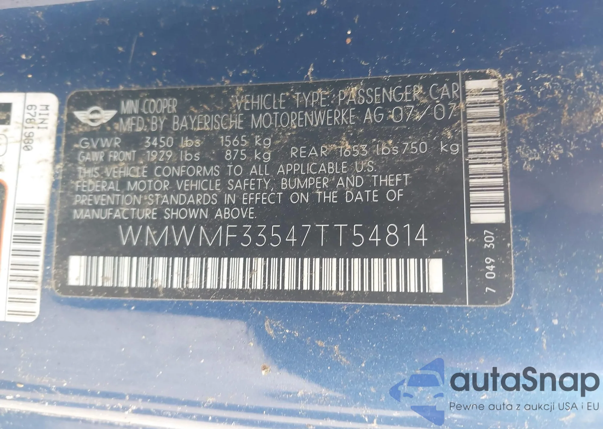 LOT: 42476308 VIN: WMWMF33547TT54814