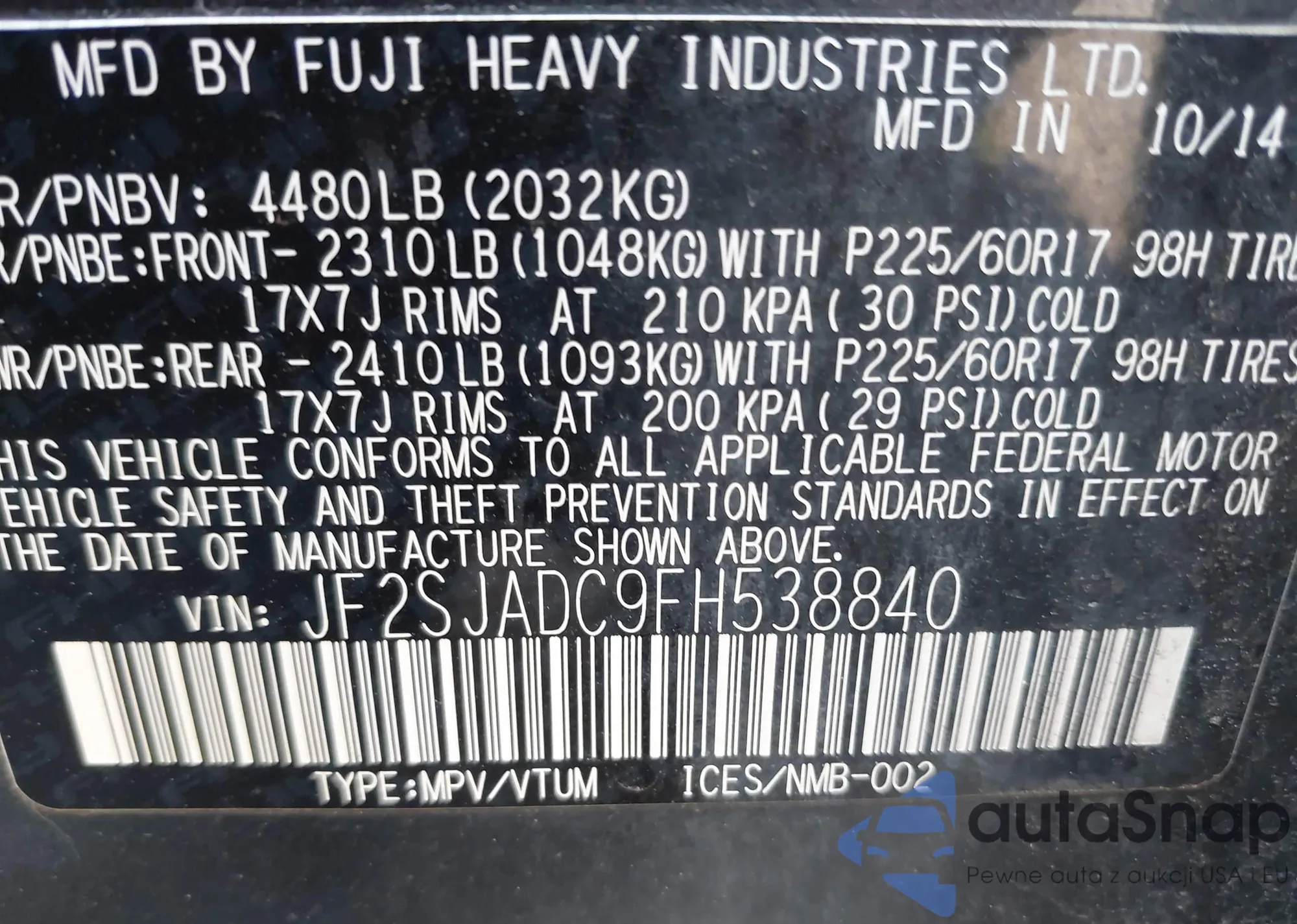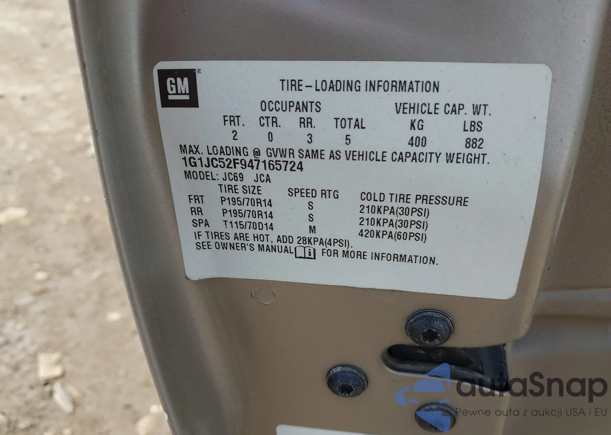 • VIN KL79MPS2XPB112450