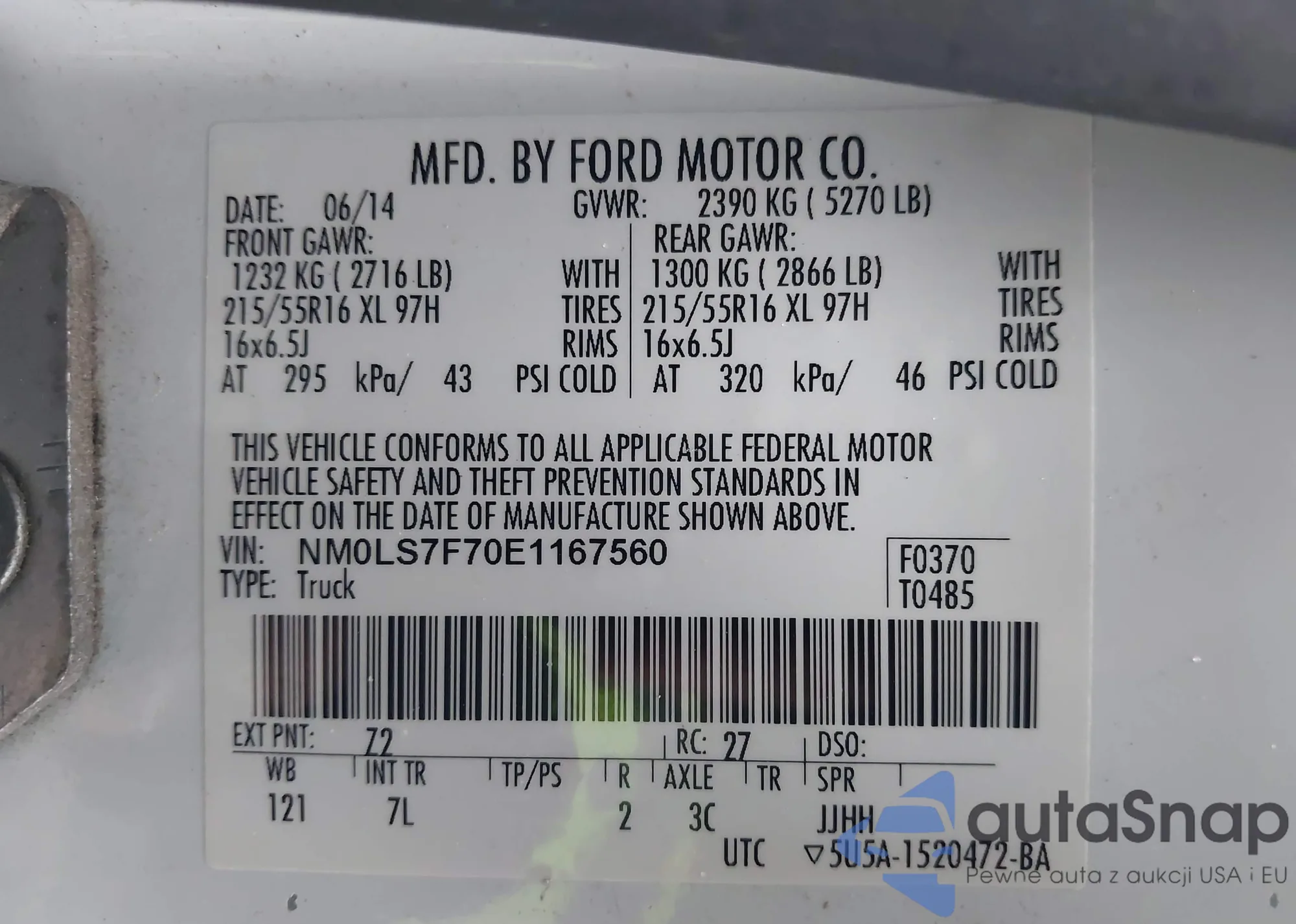 LOT: 42511429 VIN: NM0LS7F70E1167560