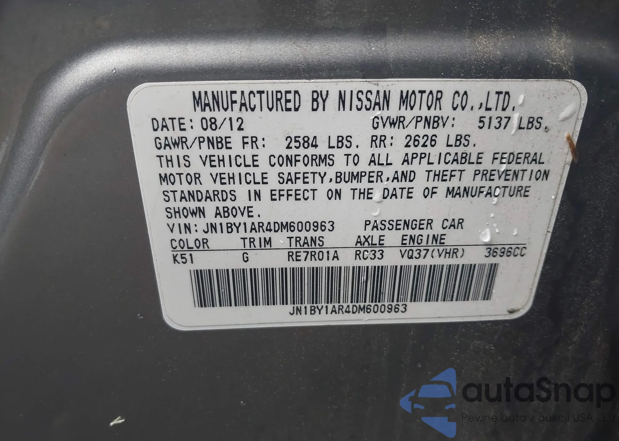 LOT: 42524033 VIN: JN1BY1AR4DM600963