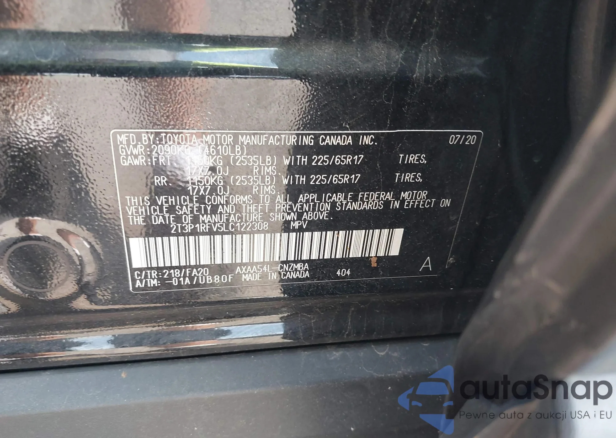 LOT: 42530935 VIN: 2T3P1RFV5LC122308