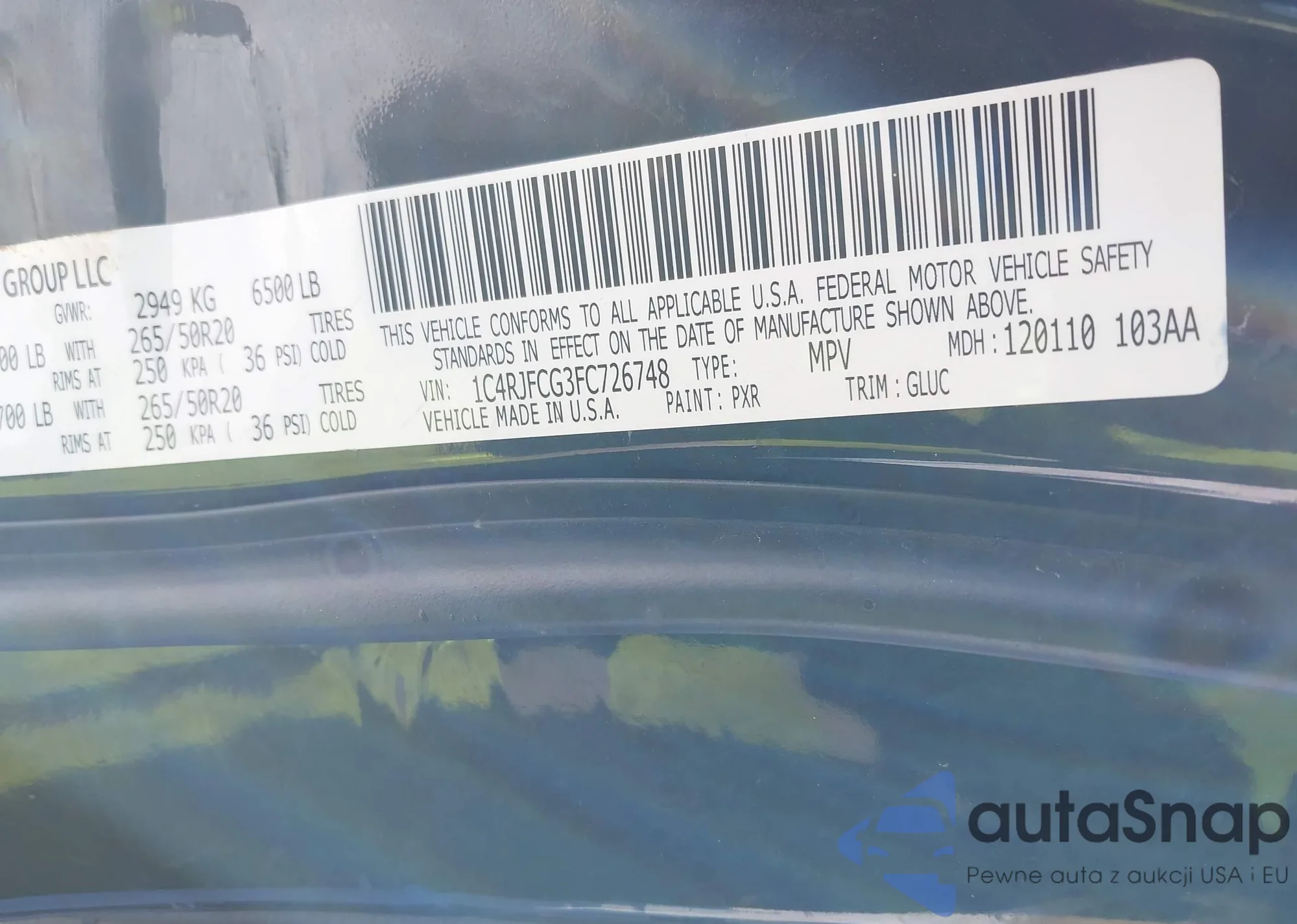 • VIN 1C4RJFCG3FC726748