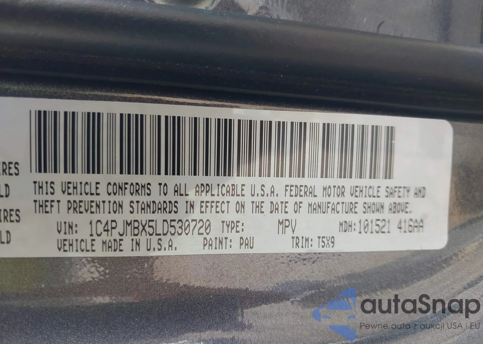 • VIN 1C4PJMBX5LD530720