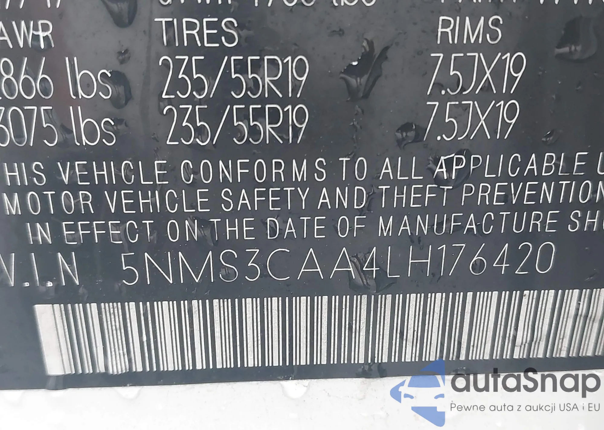 • VIN 5NMS3CAA4LH176420