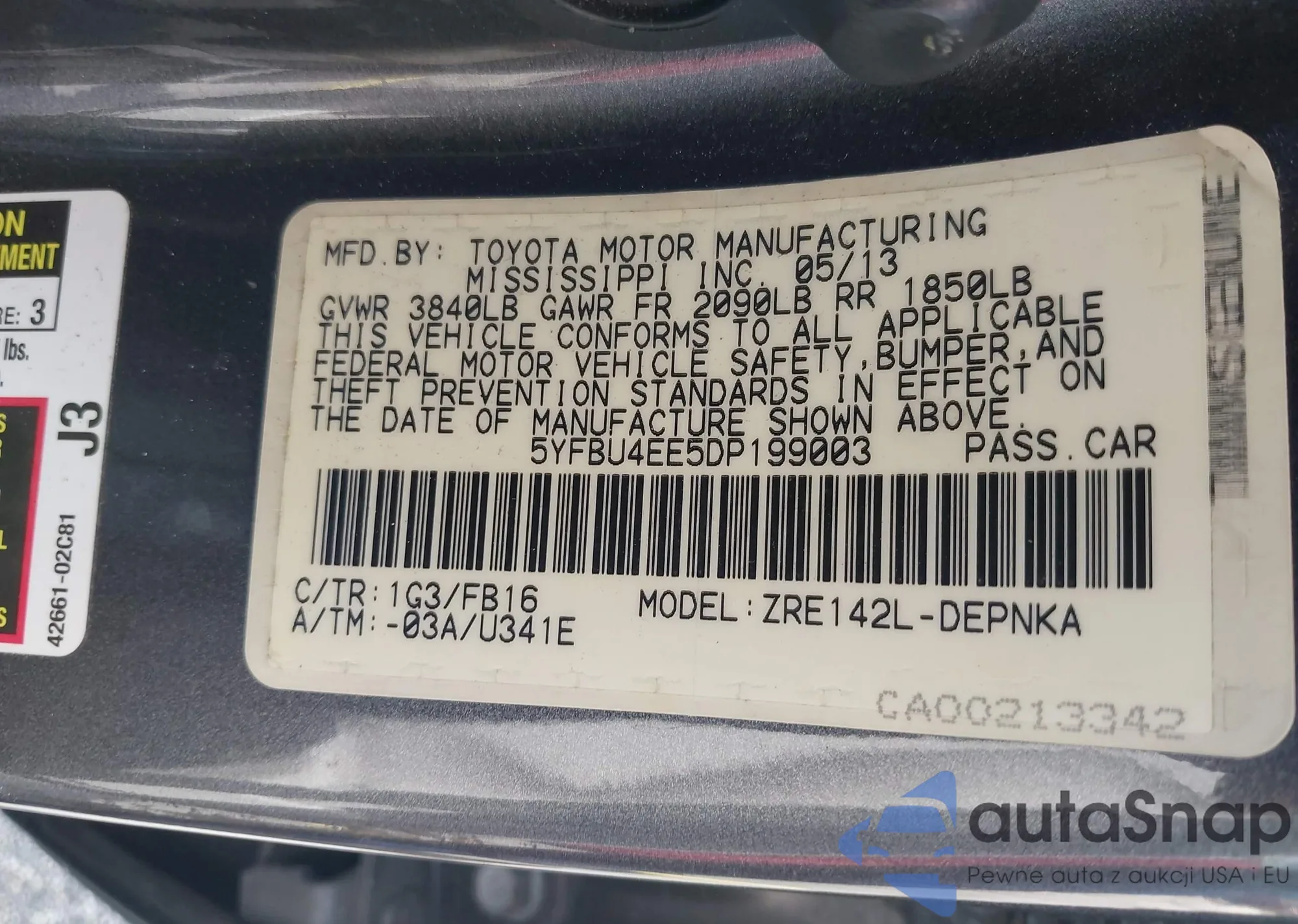 LOT: 42512149 VIN: 5YFBU4EE5DP199003