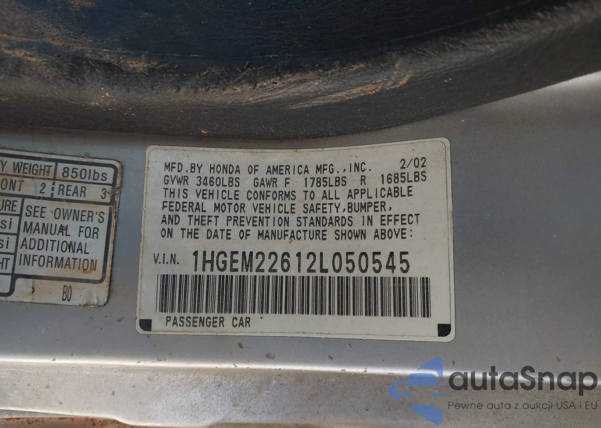 LOT: 42326189 VIN: 1HGCP2F39AA100262