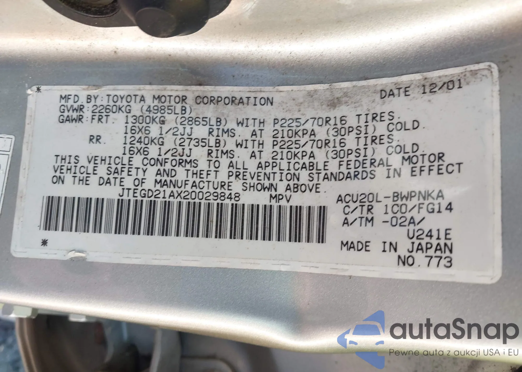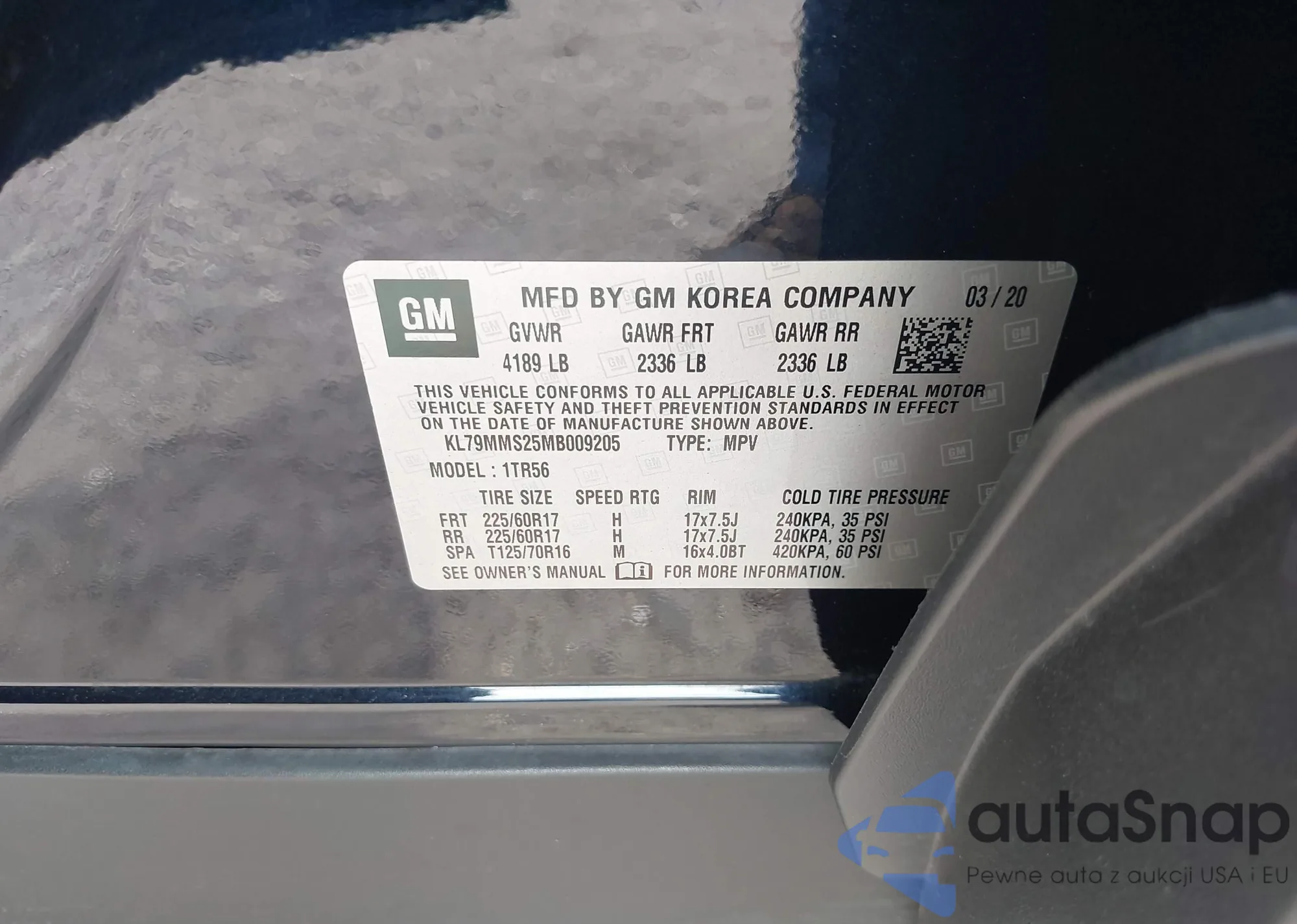 • VIN KL79MMS25MB009205