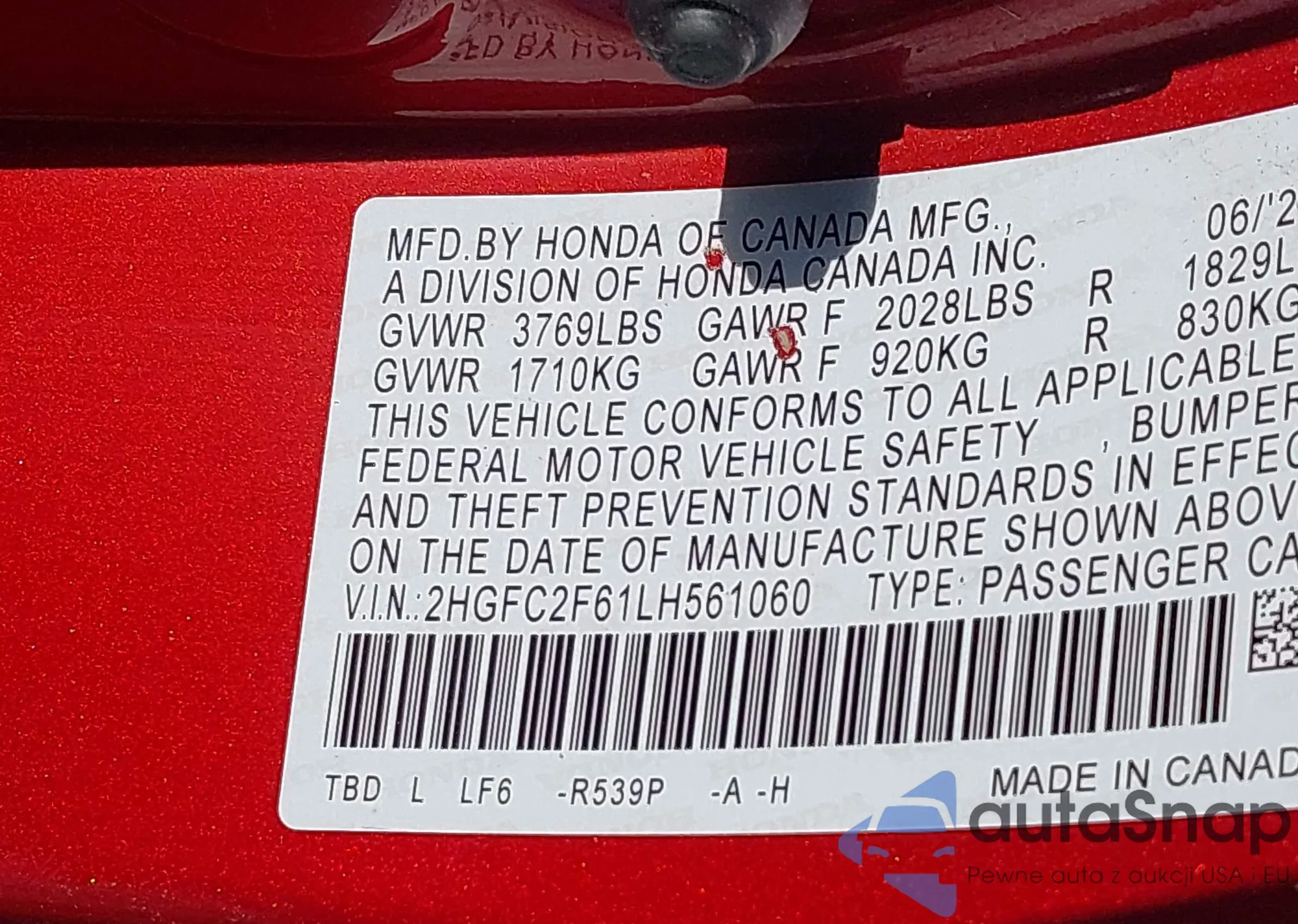 • VIN 2HGFC2F61LH561060