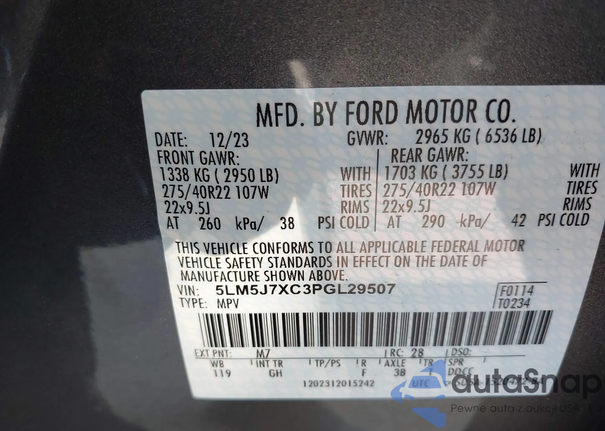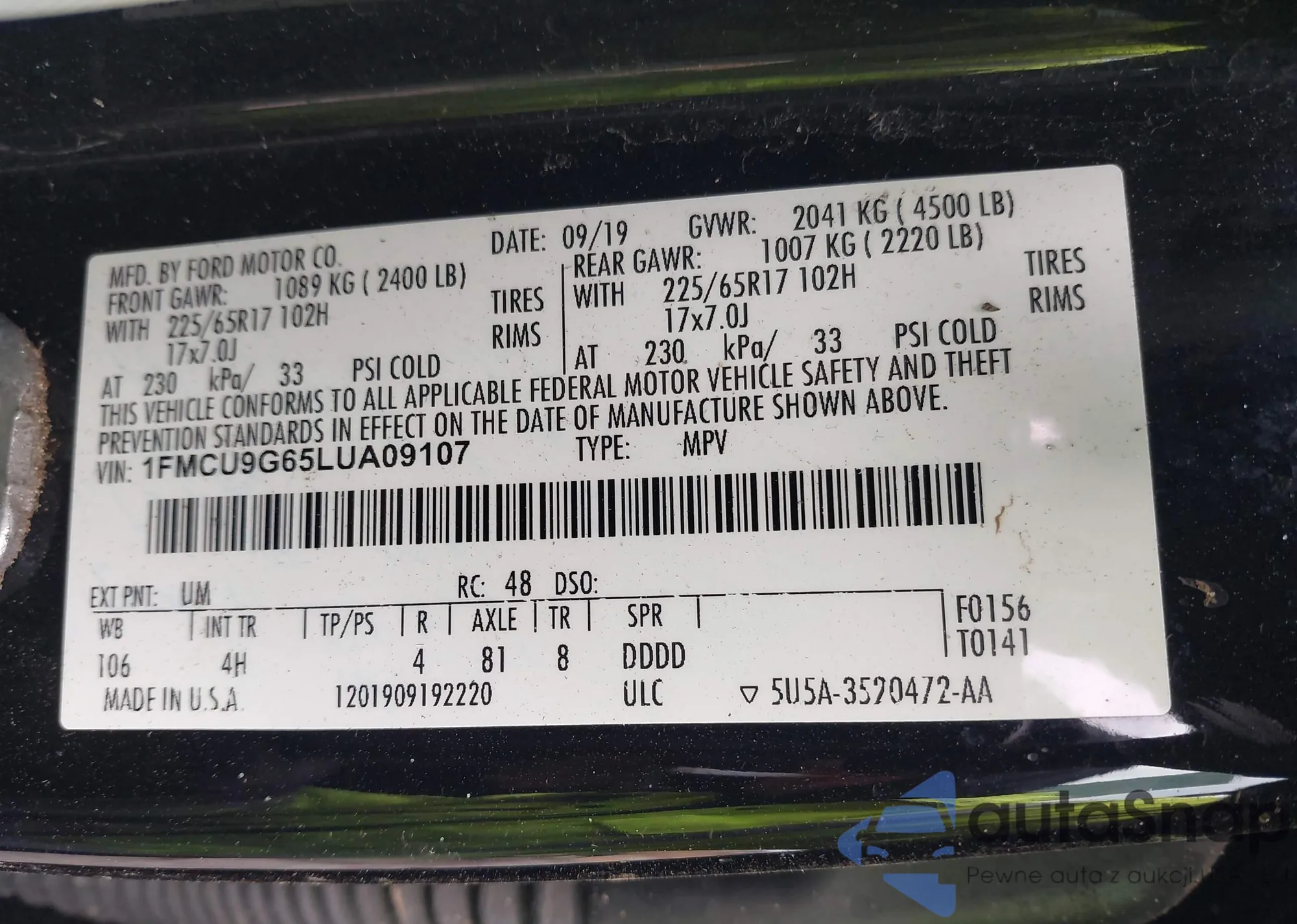• VIN 1FMCU9G65LUA09107