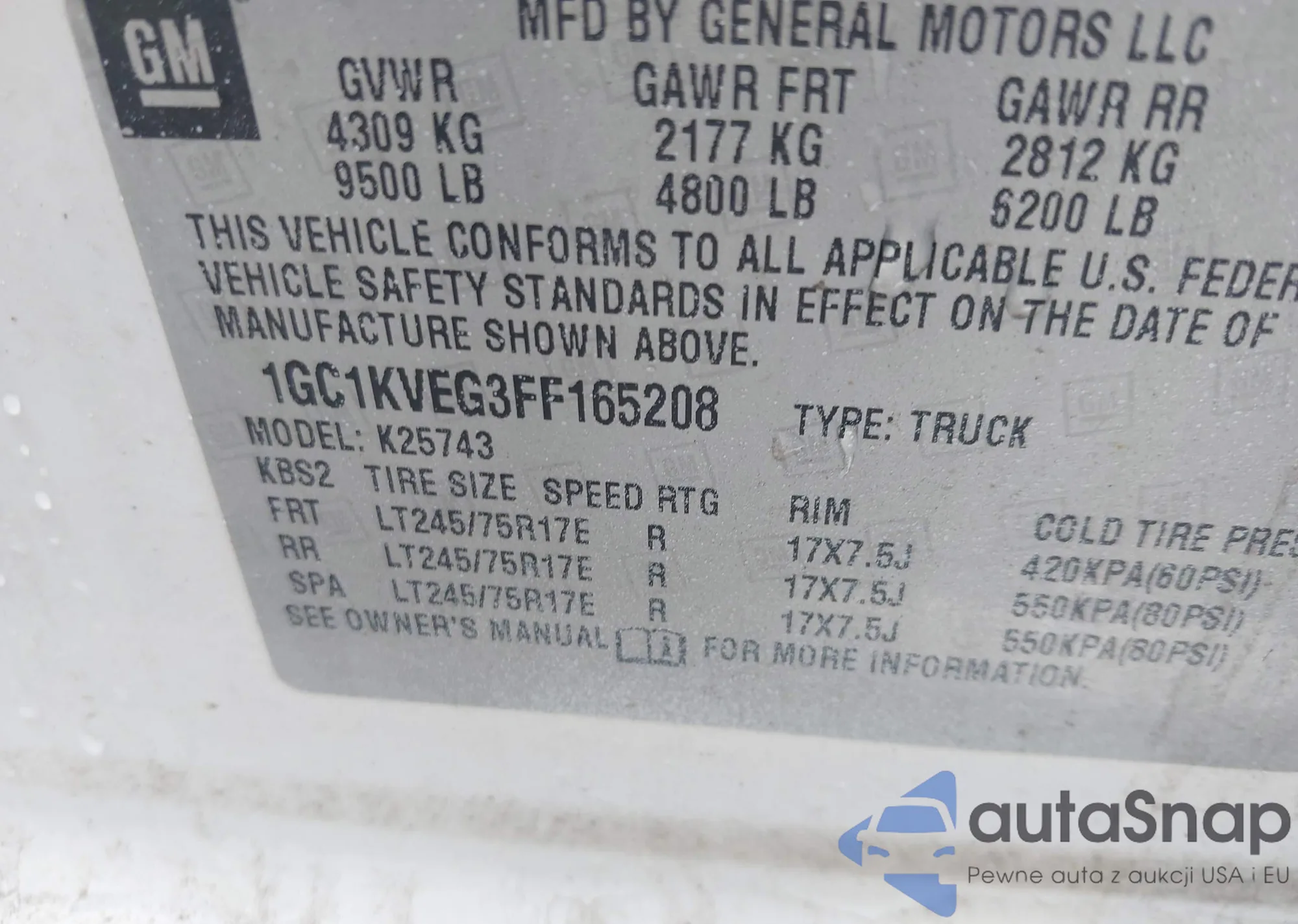 • VIN 1GC1KVEG3FF165208