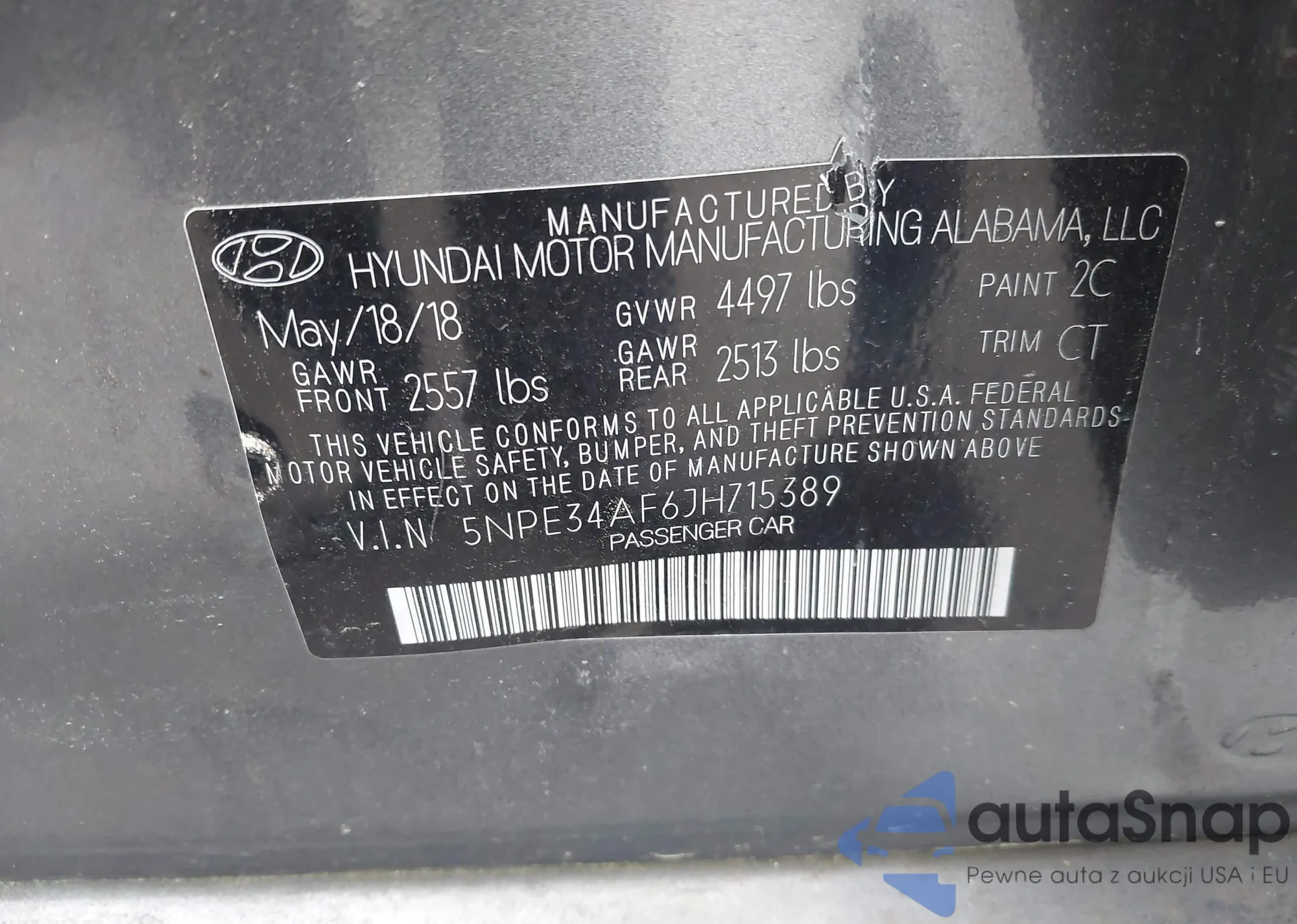 • VIN 5NPE34AF6JH715389
