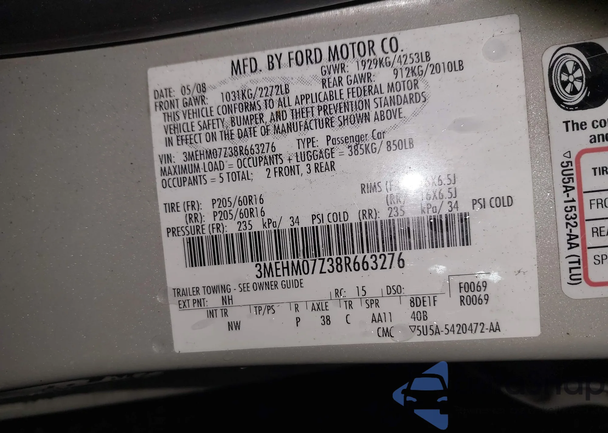 • VIN 3MEHM07Z38R663276