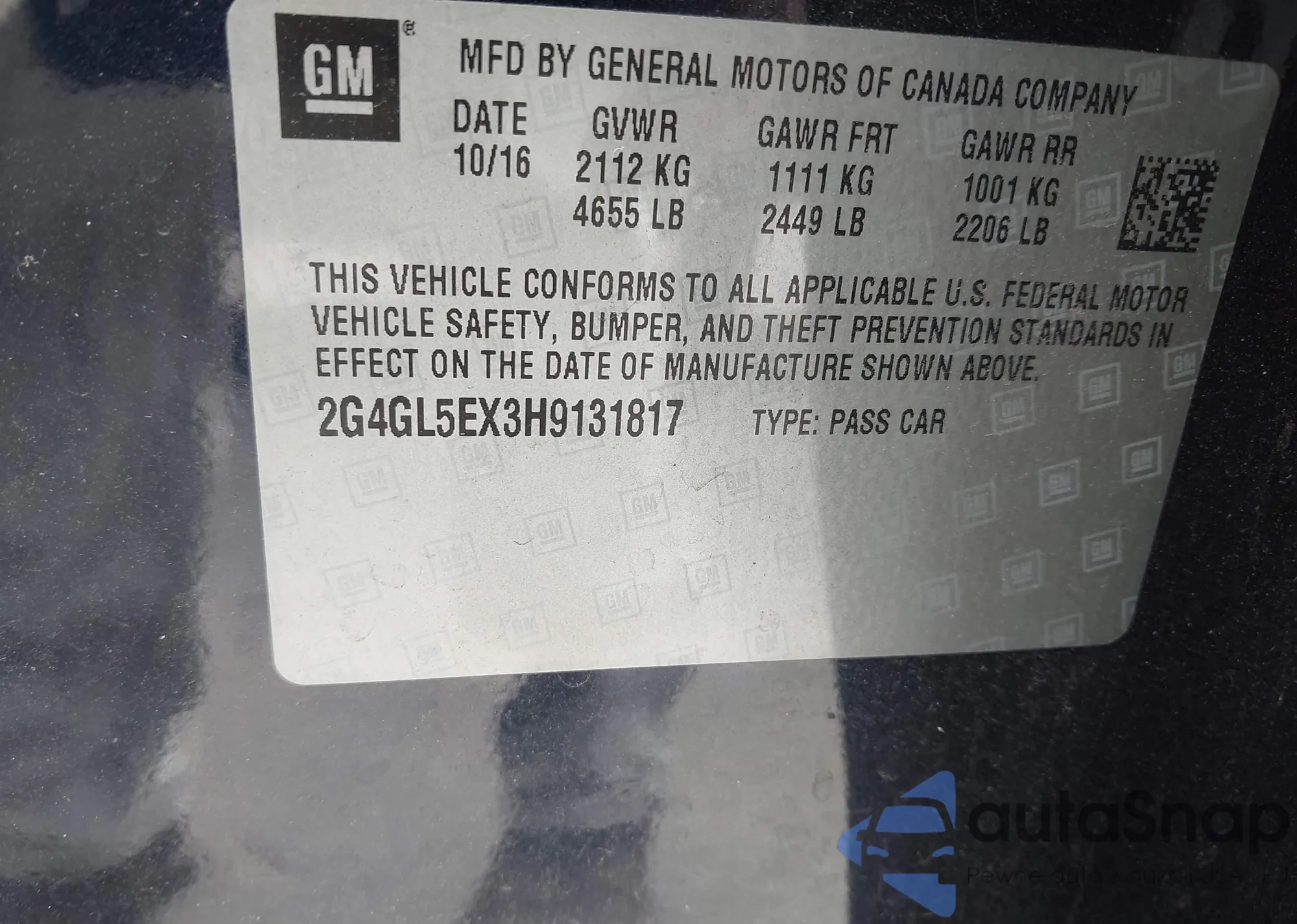 • VIN 2G4GL5EX3H9131817