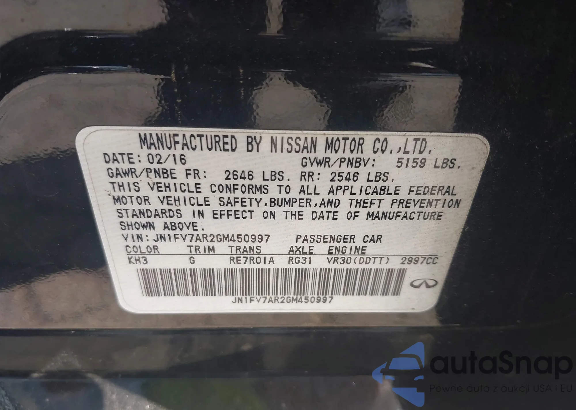 LOT: 42518049 VIN: JN1FV7AR2GM450997