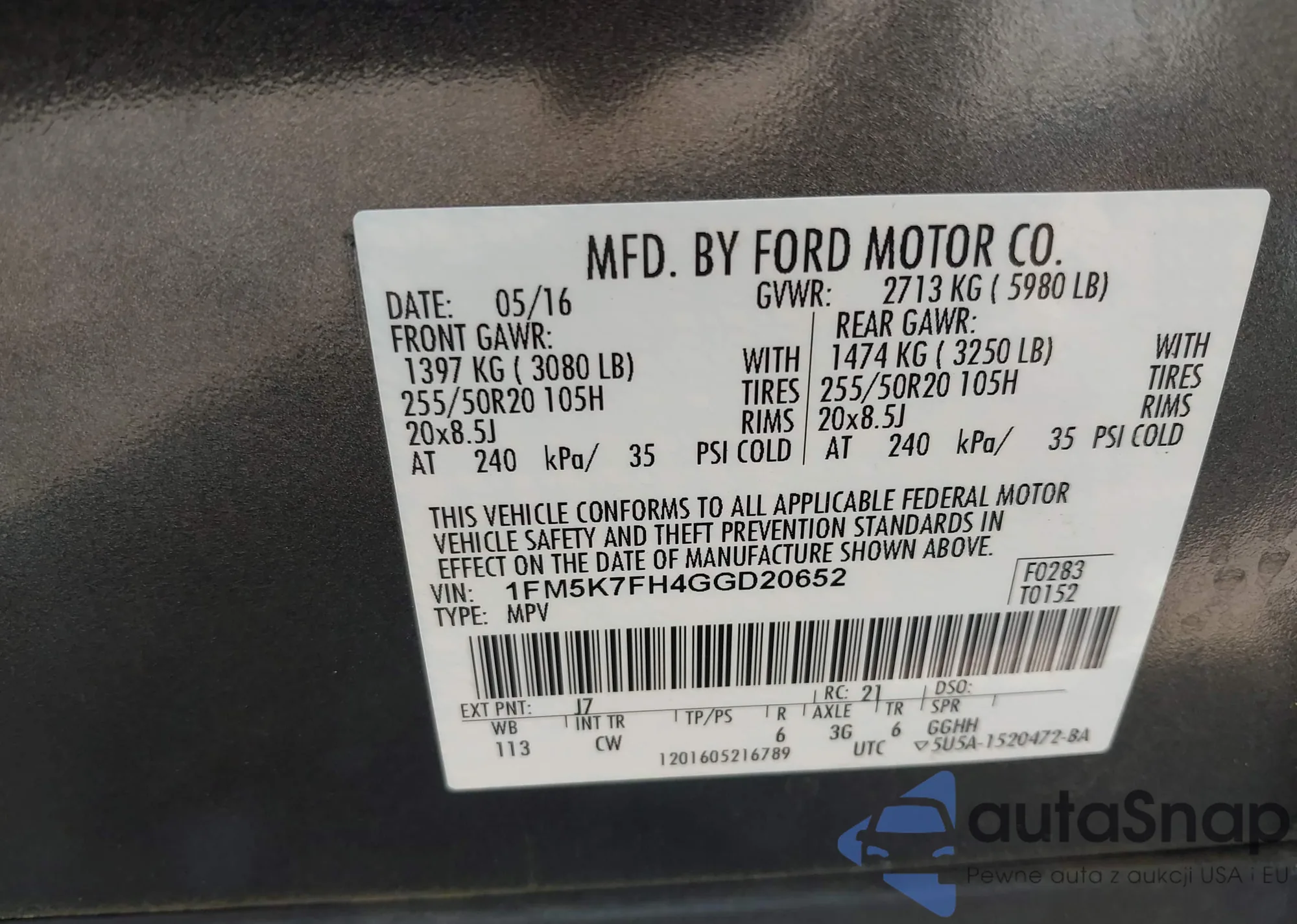 • VIN 1FM5K7FH4GGD20652