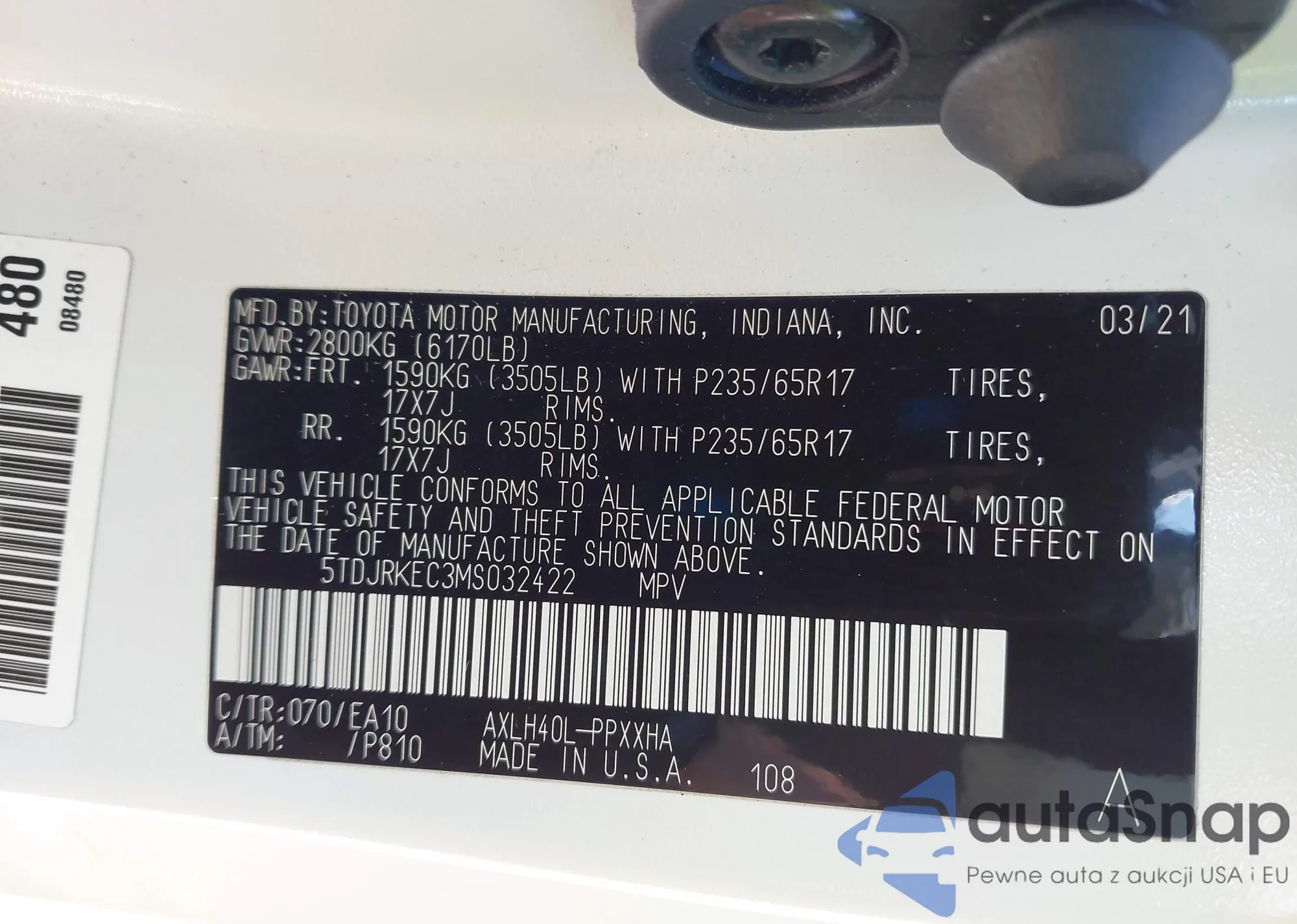 • VIN 5TDJRKEC3MS032422