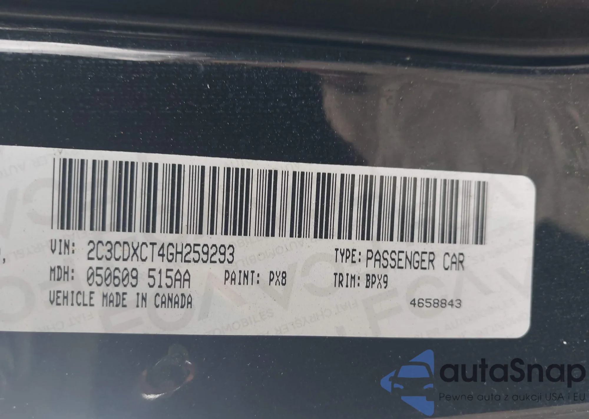 • VIN 2C3CDXCT4GH259293