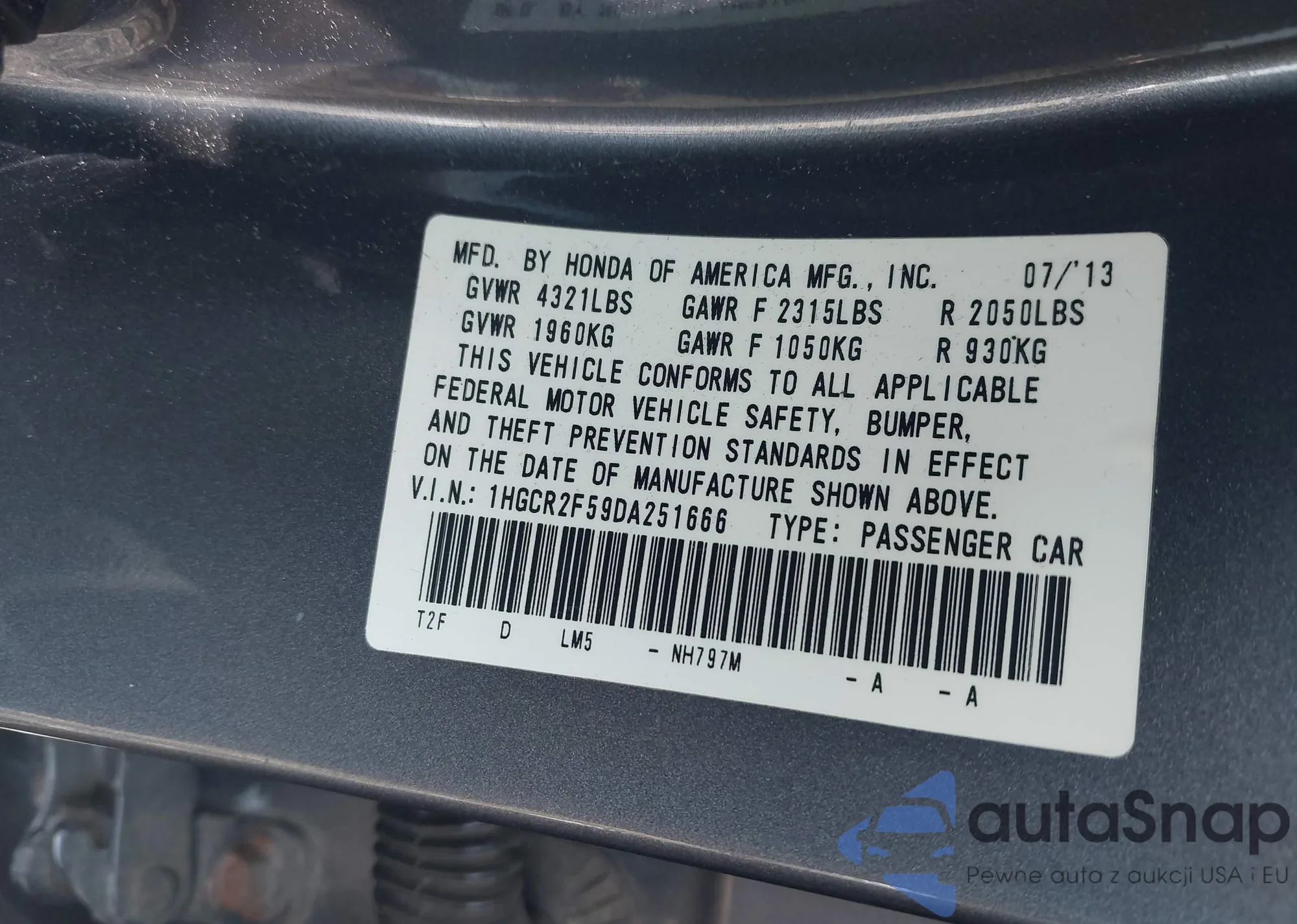 • VIN 1HGCR2F59DA251666