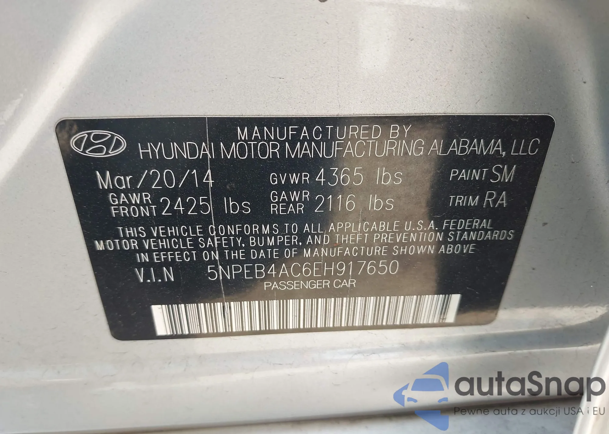 • VIN 5NPEB4AC6EH917650