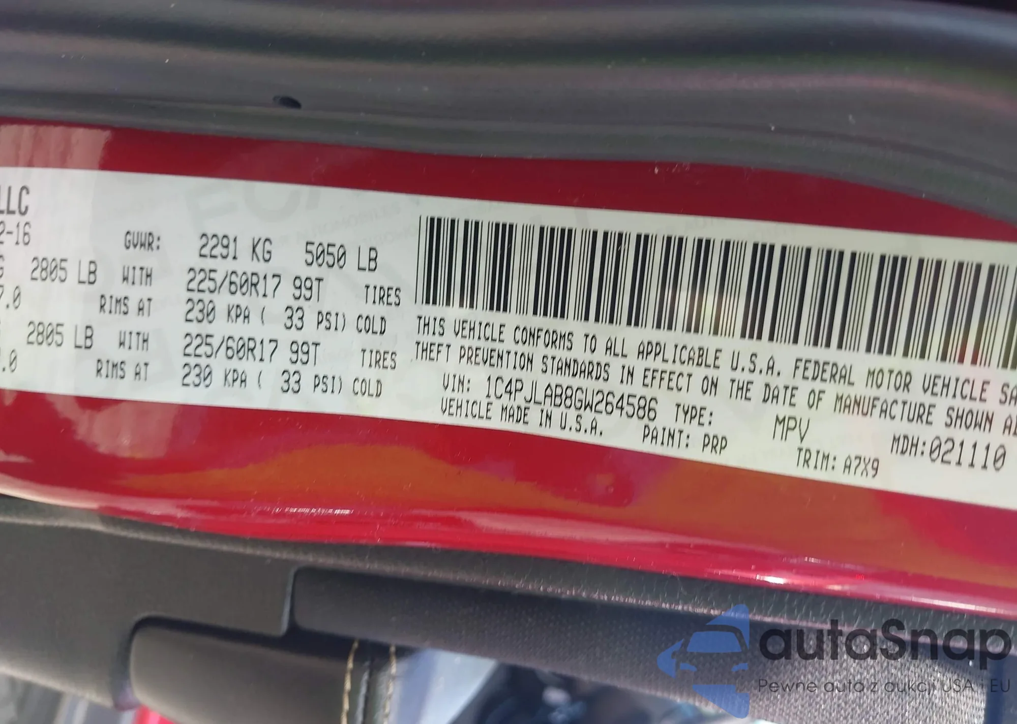 • VIN 1C4PJLAB8GW264586
