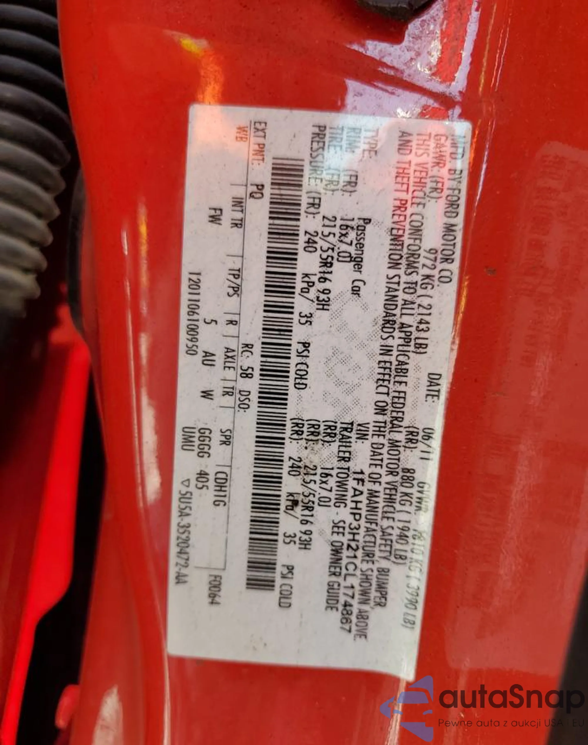 • VIN 1HGCP2F83CA070691